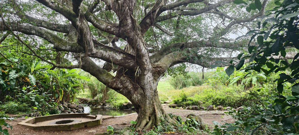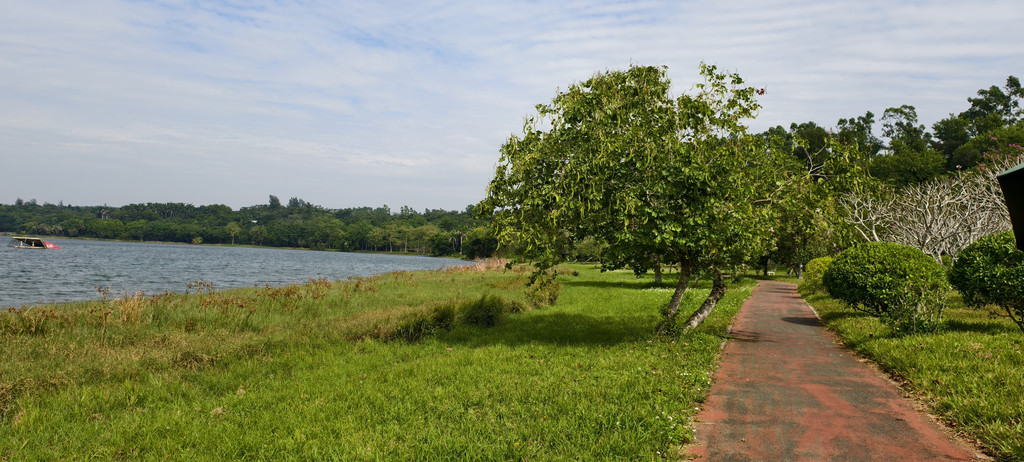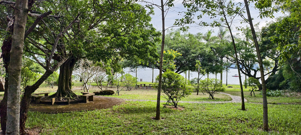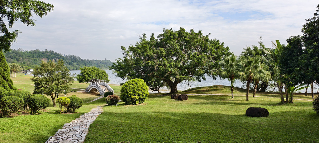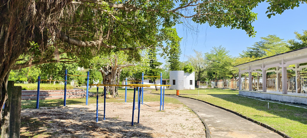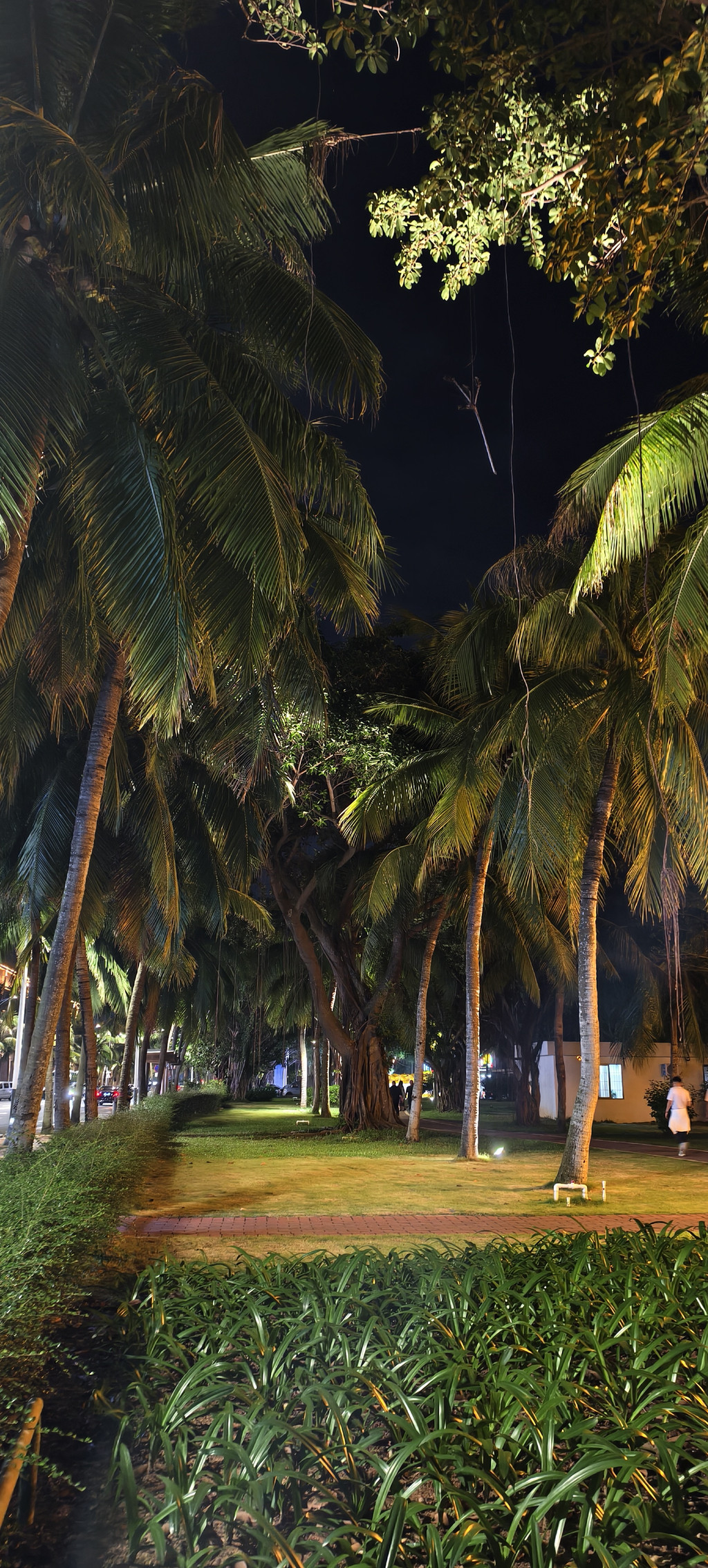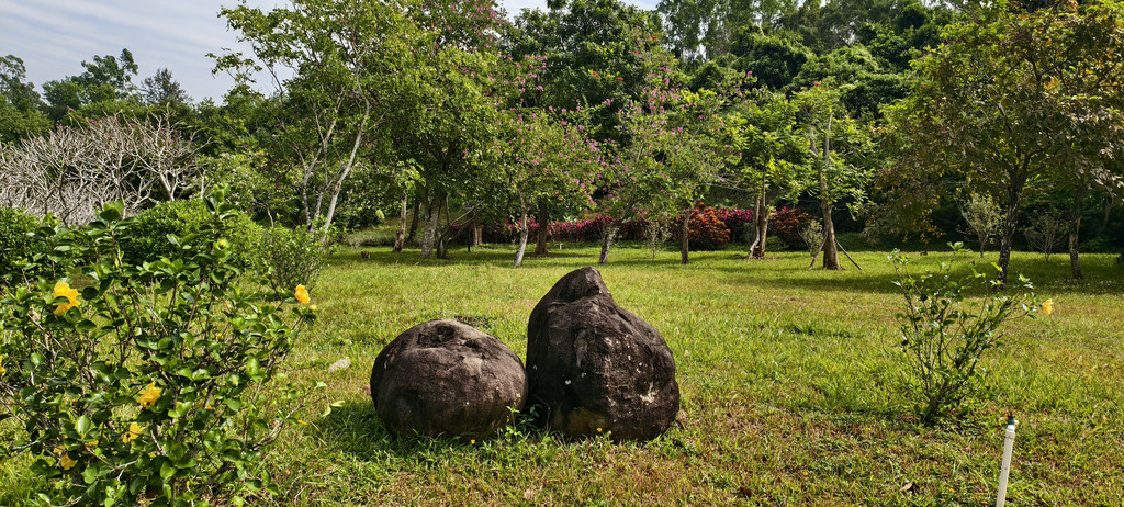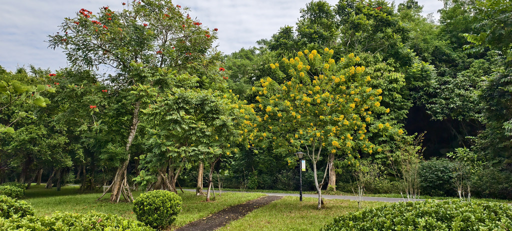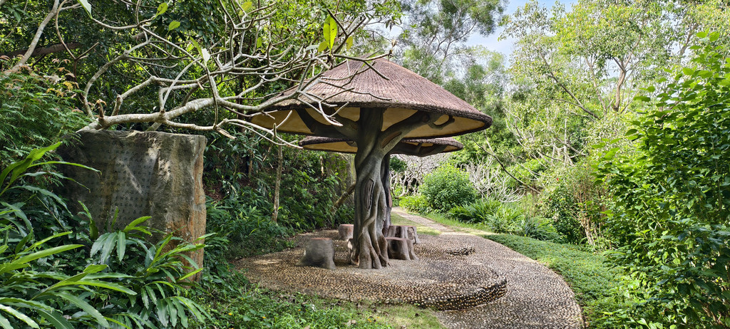 一个完完全全的热带风情公园,椰树摇曳,绿草油茵,花色芬芳,古木怪树,密密丛丛。