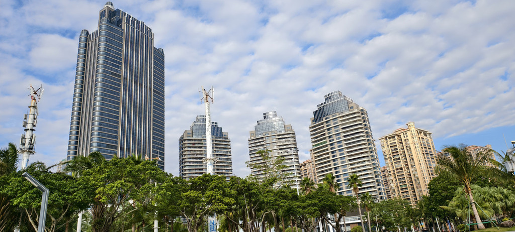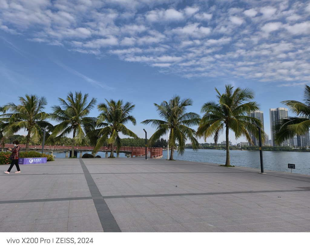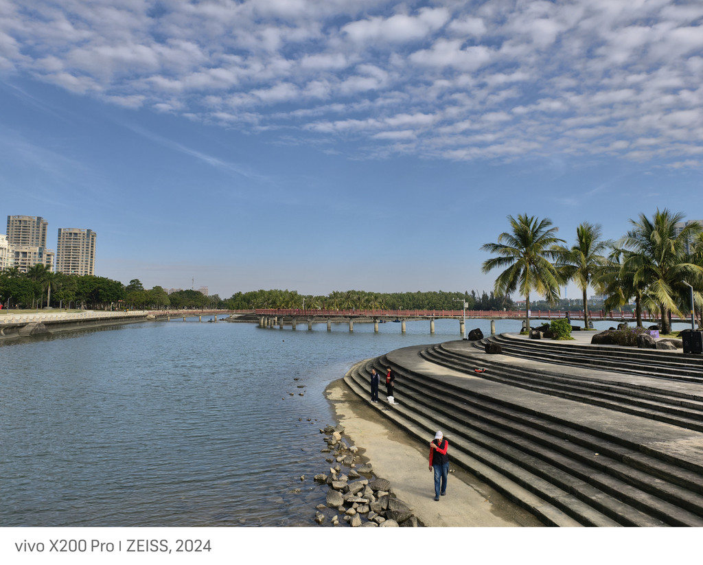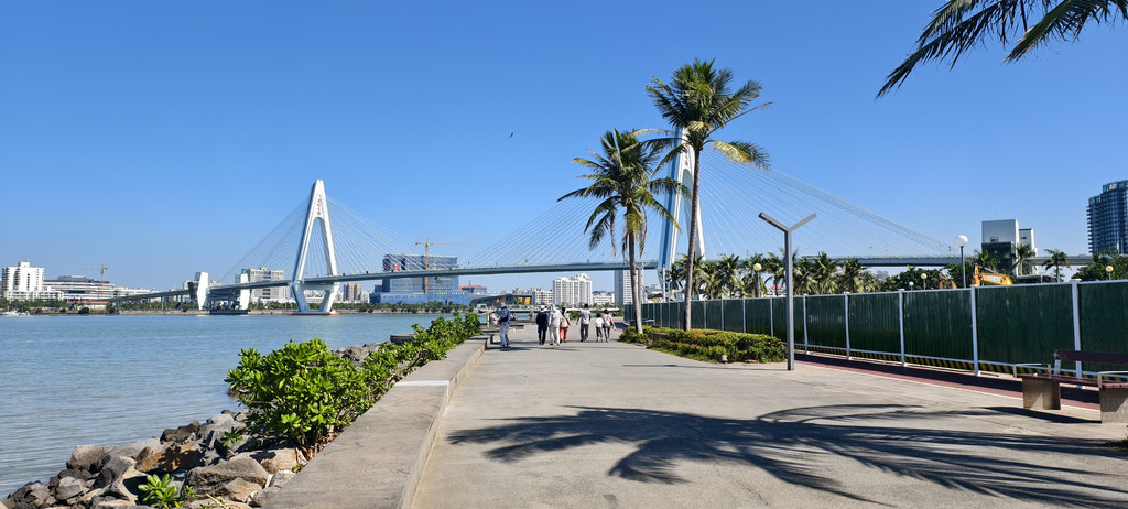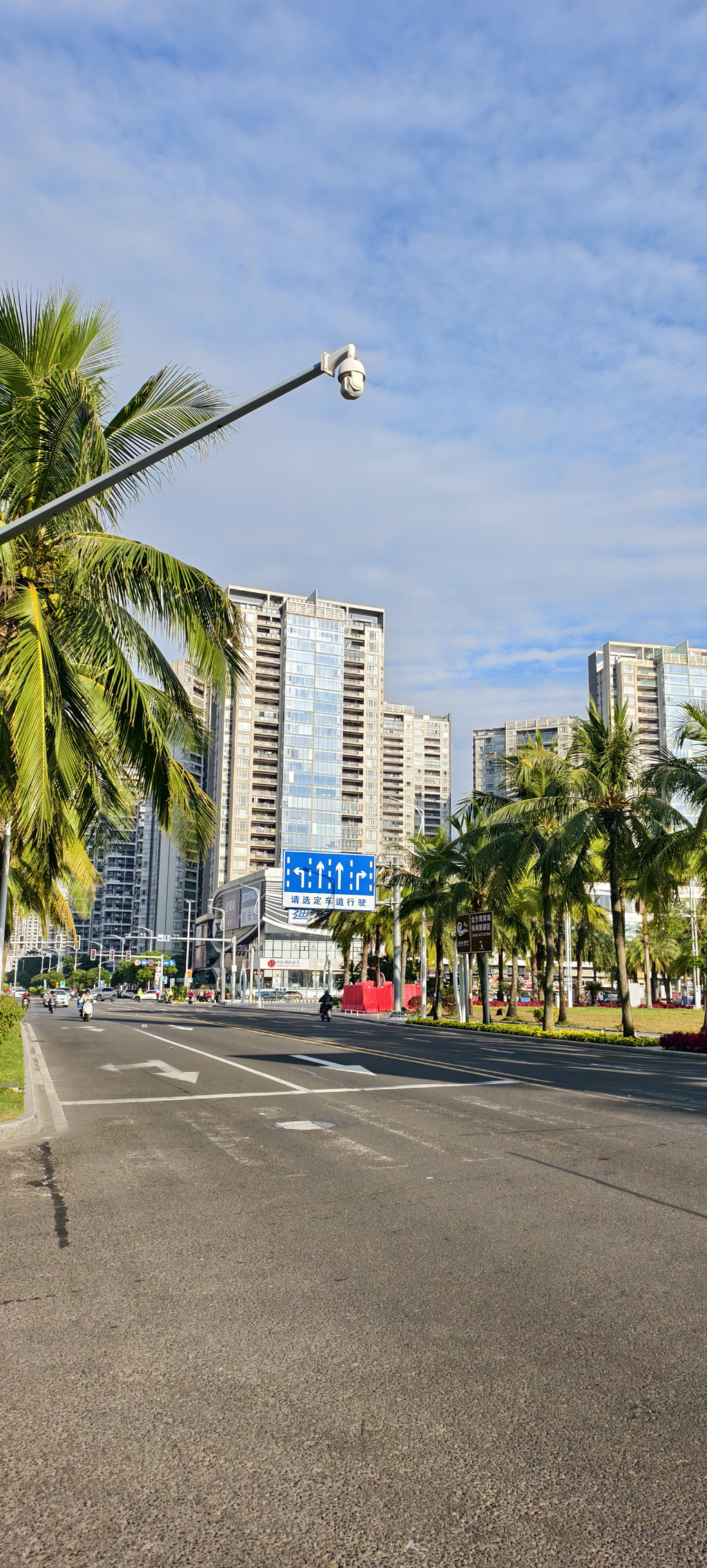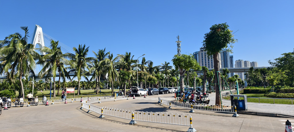 还可以看的到海口地标性建筑:“世纪大桥”,还有蓝天、白云、椰子树。