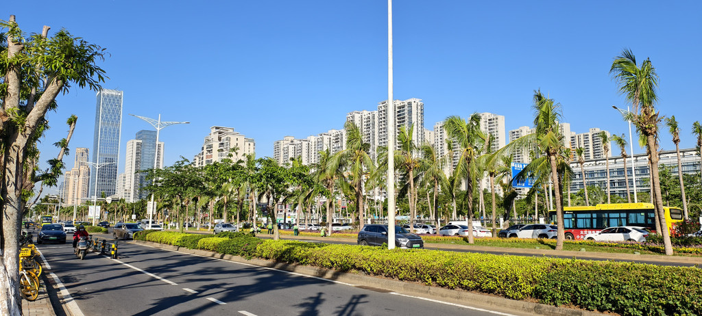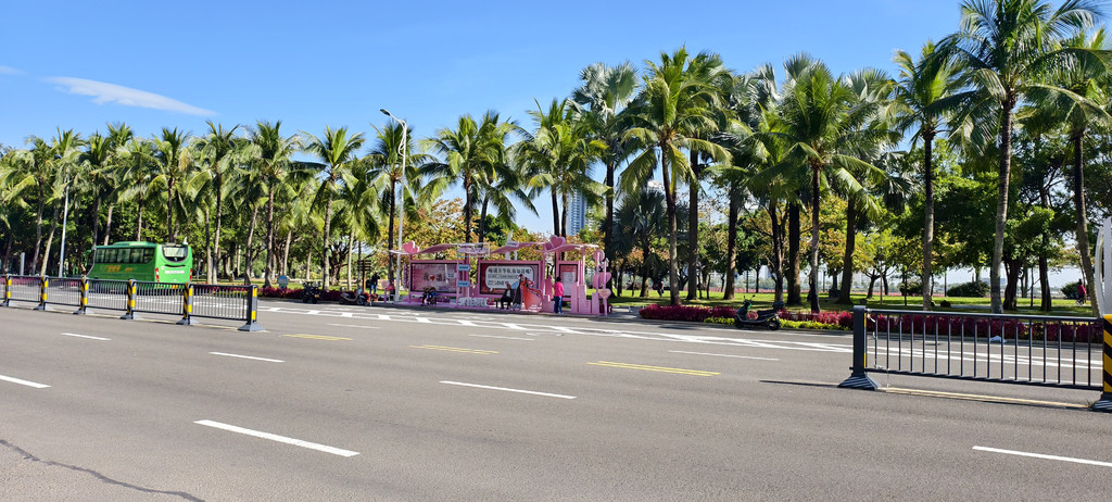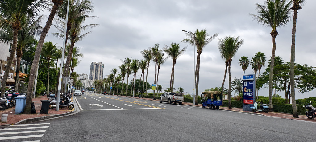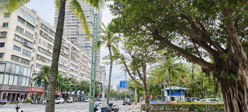酒店附近就是霞山观海长廊,必须穿过观海路。初来乍到,这浓浓的南国风情,有些醉了。