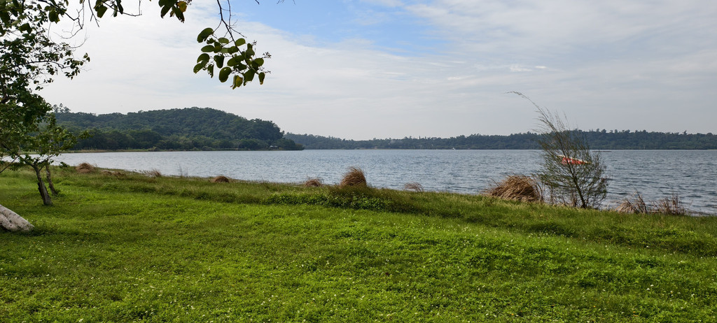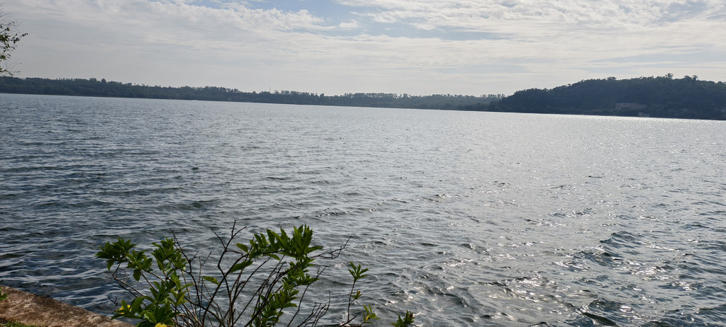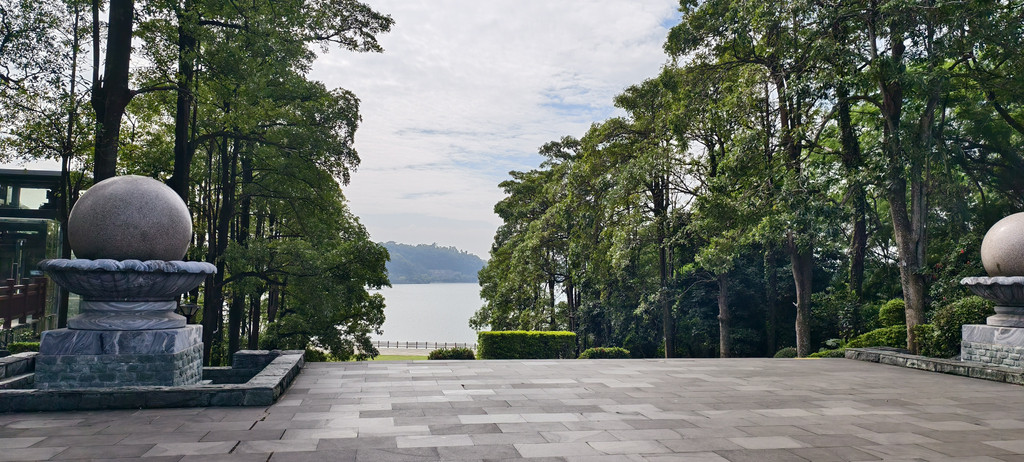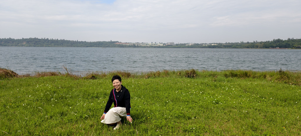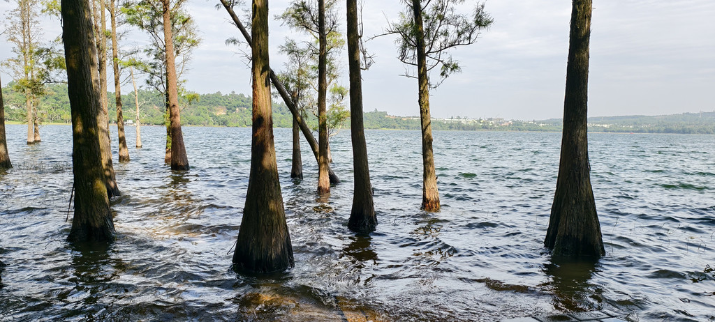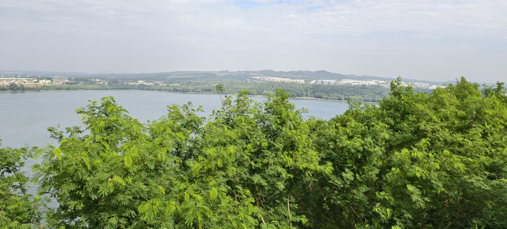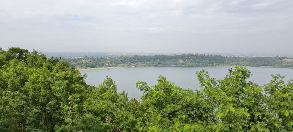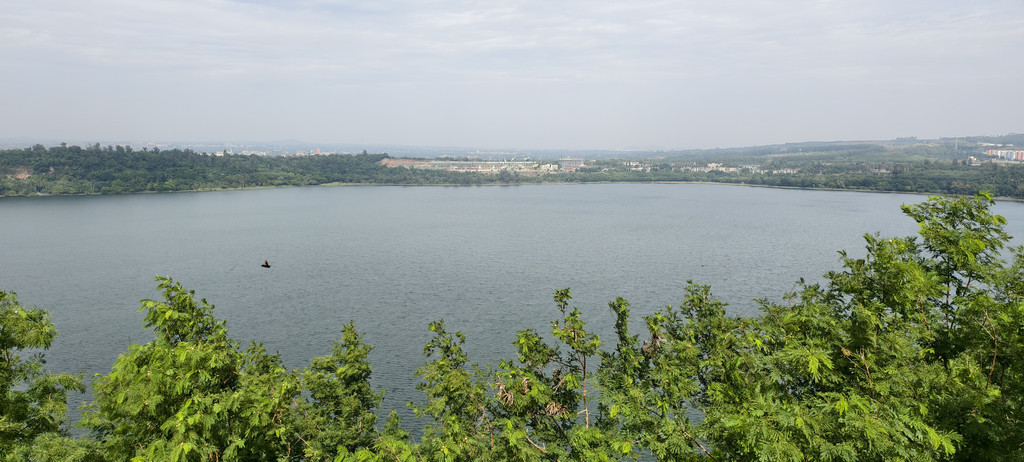 呼哧呼哧登上望海楼,就是看到别人游记中说:在望海楼最高处看玛珥湖,特别美。真正站在这个角度看,没想象那么美,因为部分视线被高大的乔木挡住了。