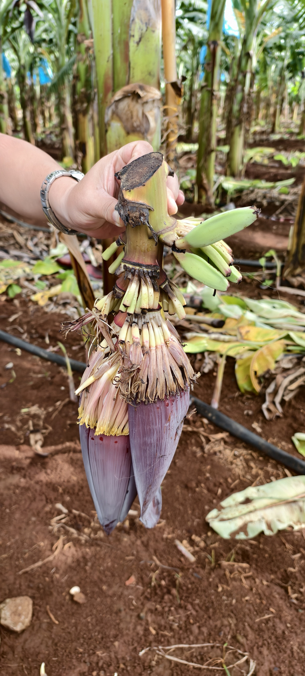 看下面这张图,就是香蕉开花时的样子,每揭开一层花瓣,就是一大串香蕉!