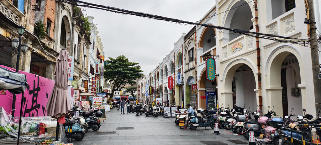 从钟楼步行几分钟就到了骑楼老街,作为海口市最具特色的历史文化街区,以其独特的南洋建筑风格吸引着无数游客的目光。