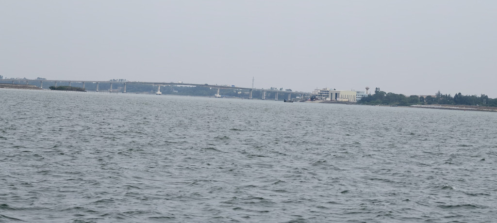 图片上看到的这座大桥就是湛江市著名的地标建筑湛江海湾大桥,位于越麻斜海湾之上,东起海川快线、西至乐山大道,连接着湛江市的坡头区与霞山区。