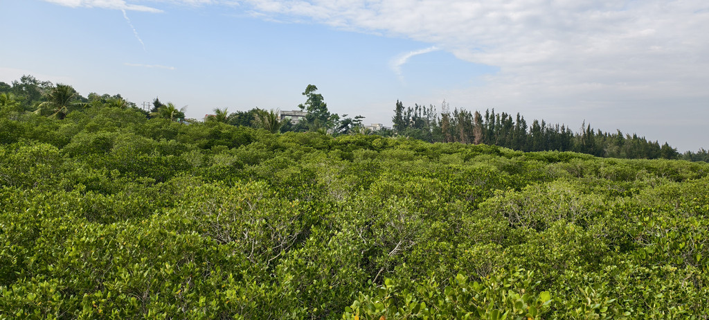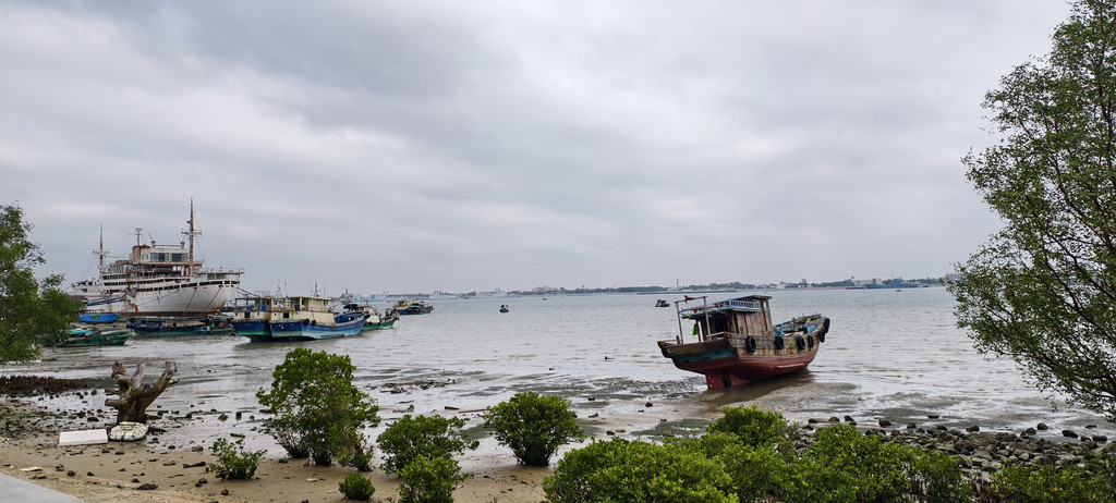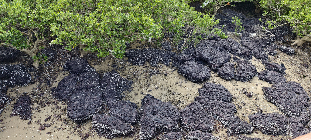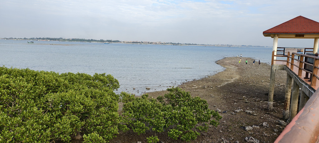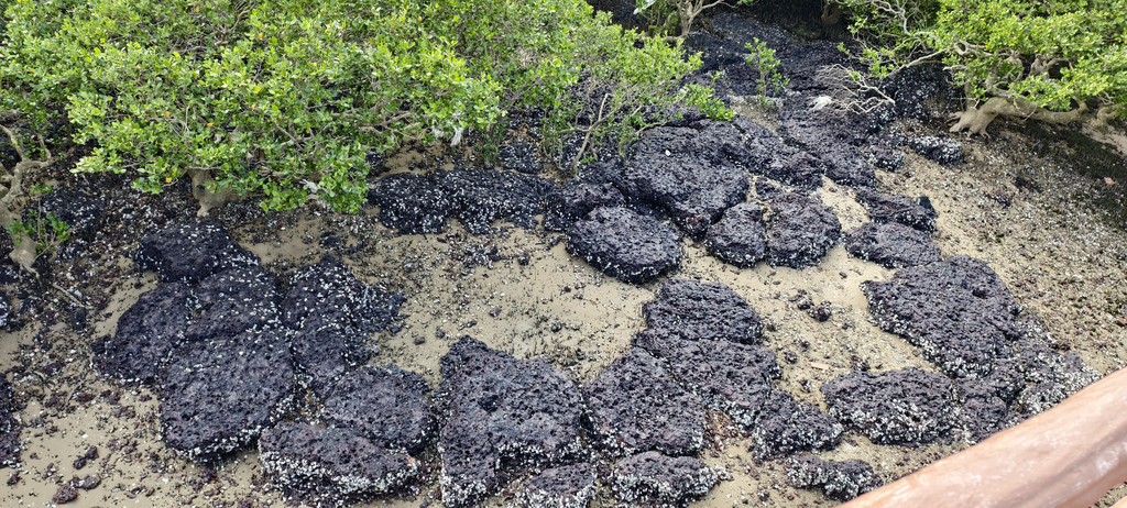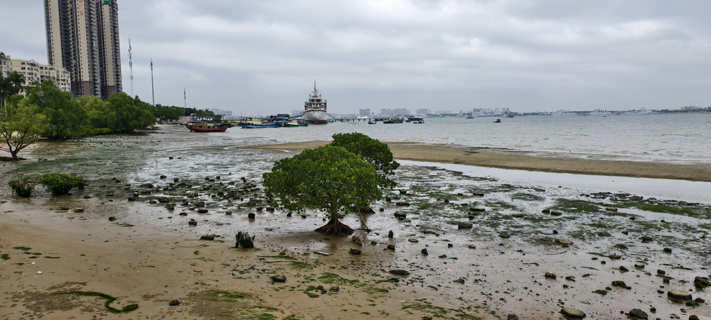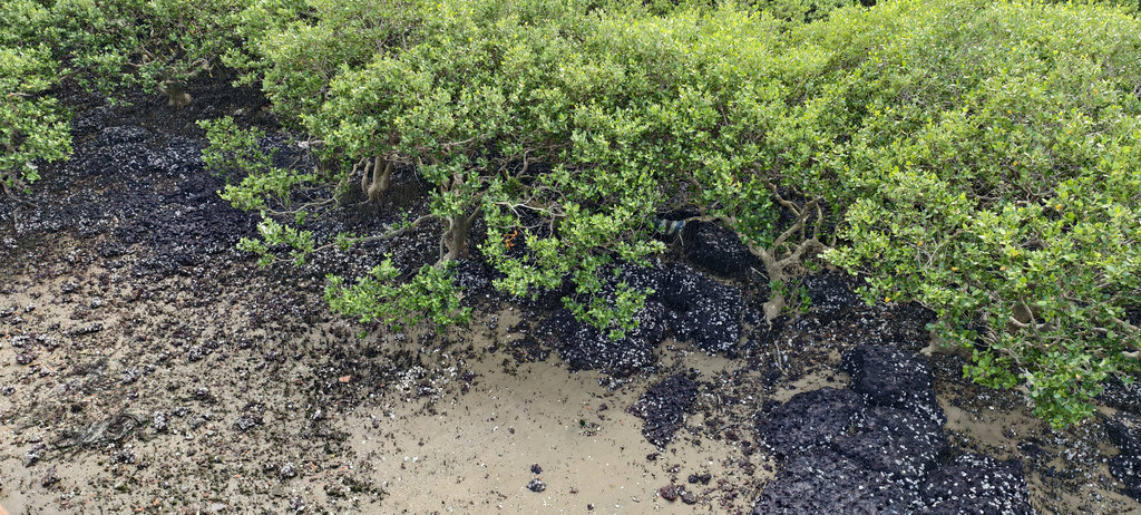 潮水退去后,全部裸露出来的红树林植被,看着有点脏兮兮,但感觉很原生态。