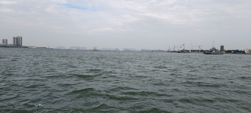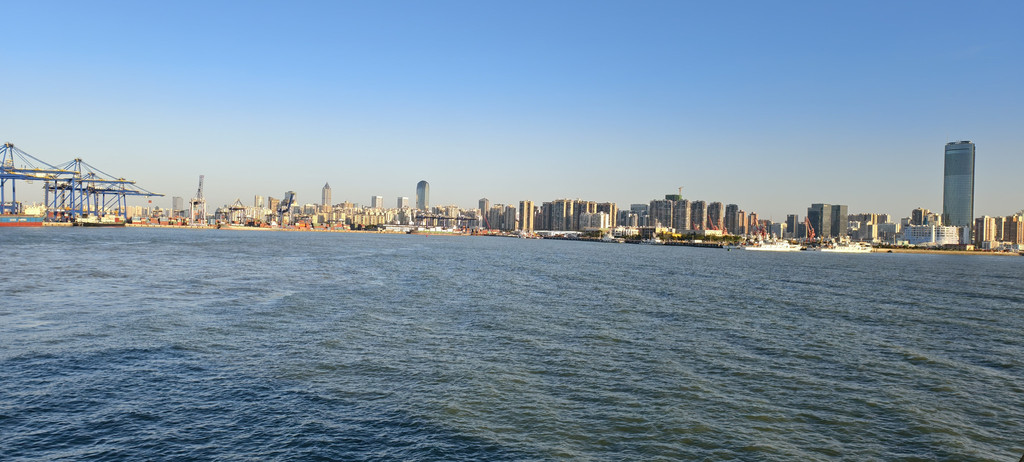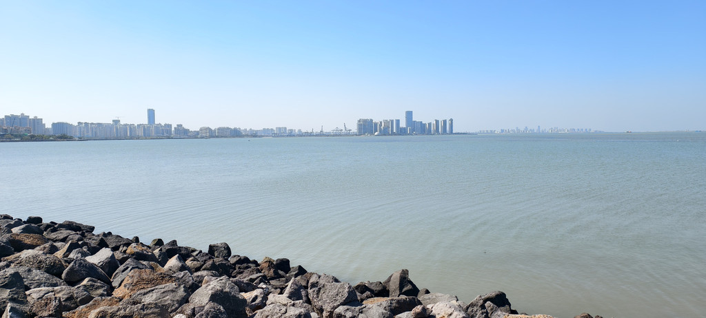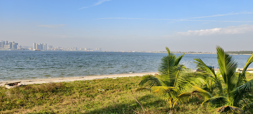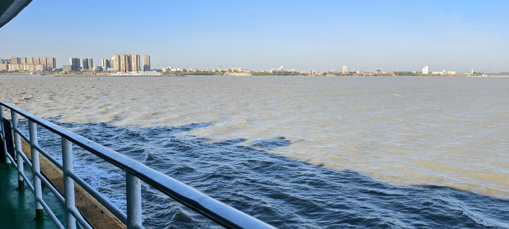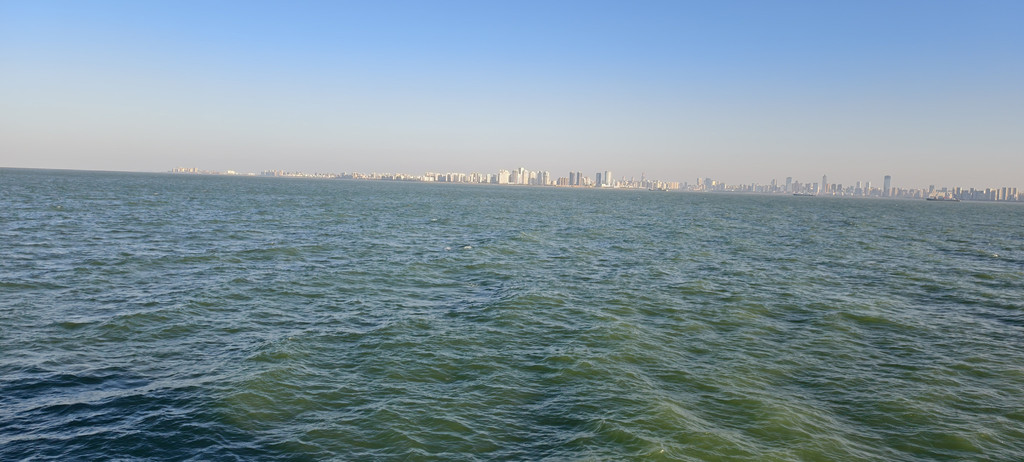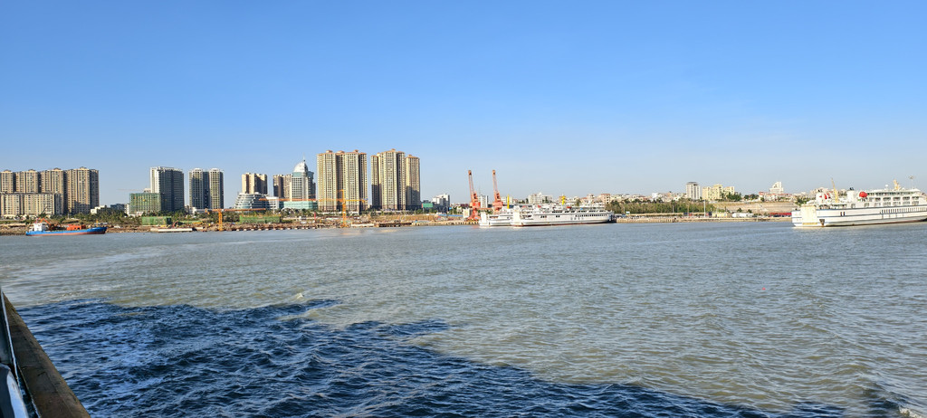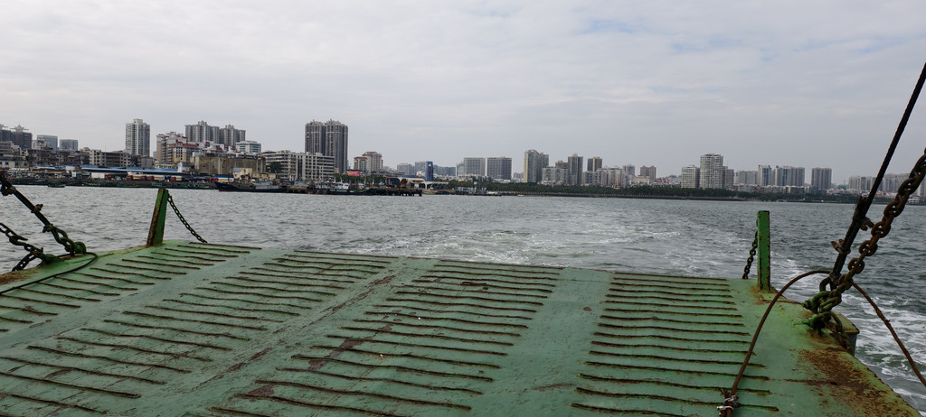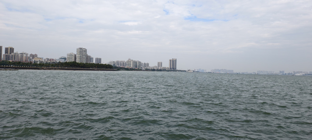 在航行大约50分钟左右就看到彼岸的高楼林立,这应该就是海口了。