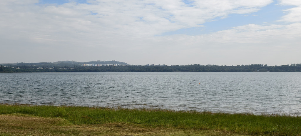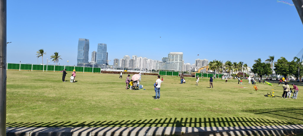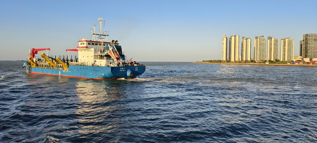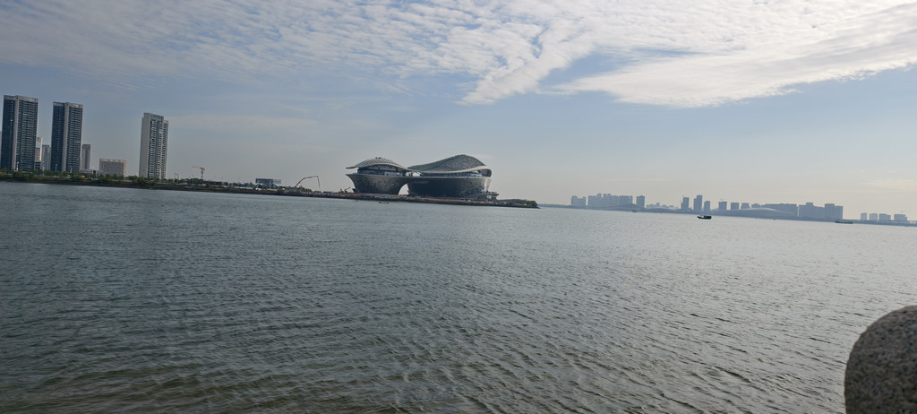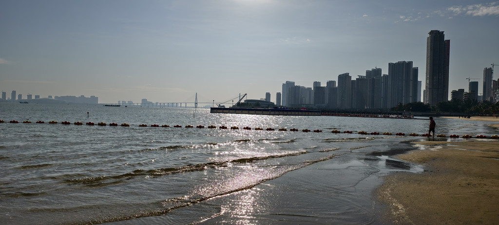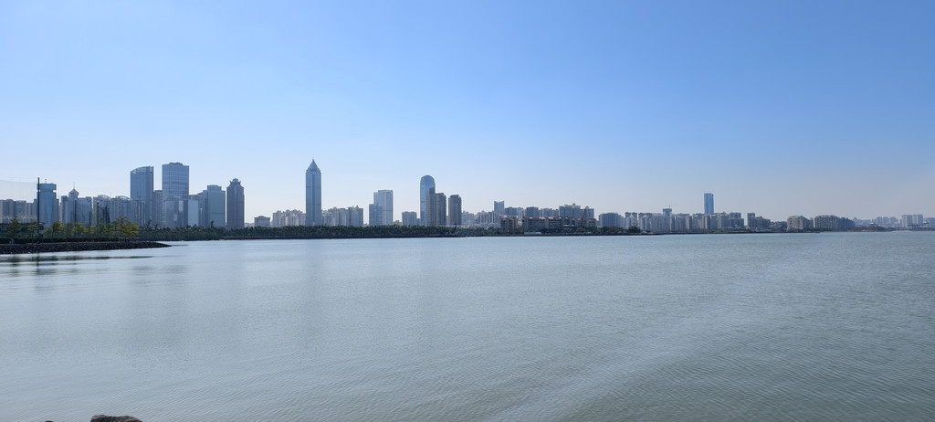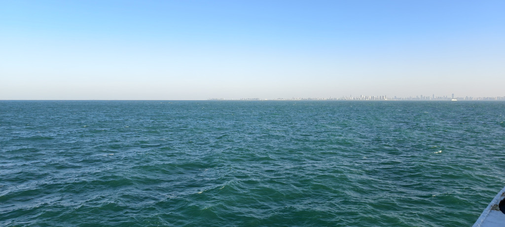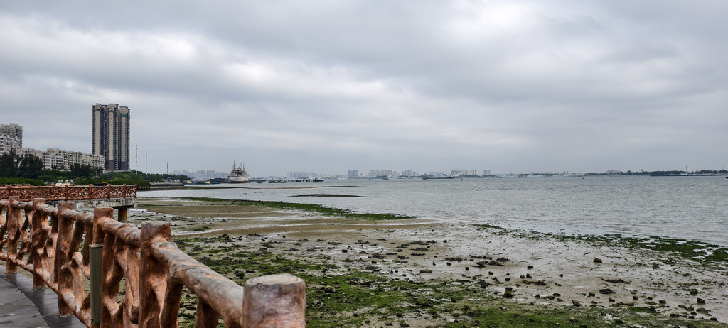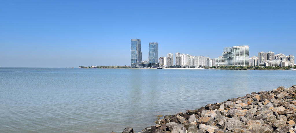 在航行大约50分钟左右就看到彼岸的高楼林立,这应该就是海口了。