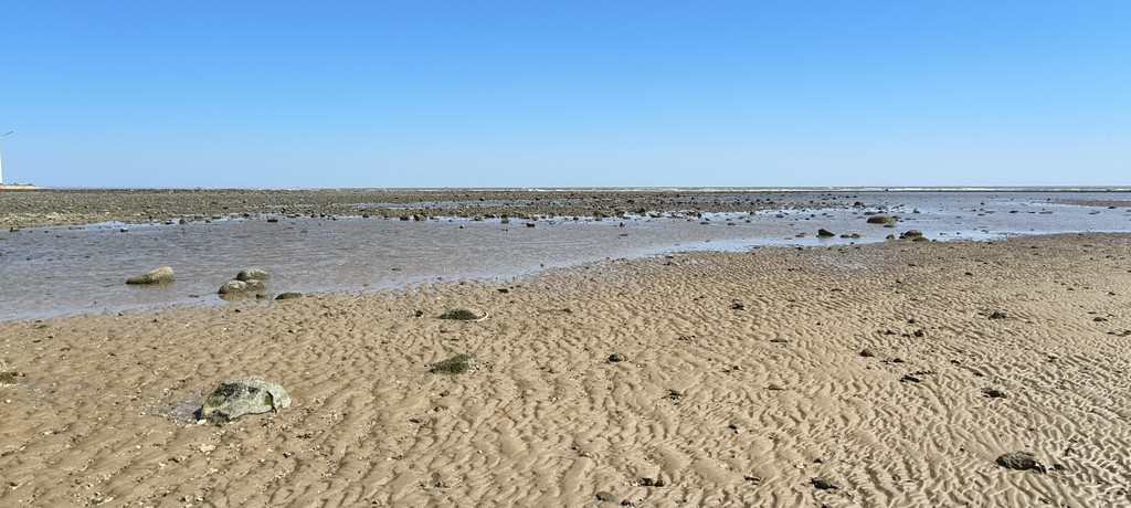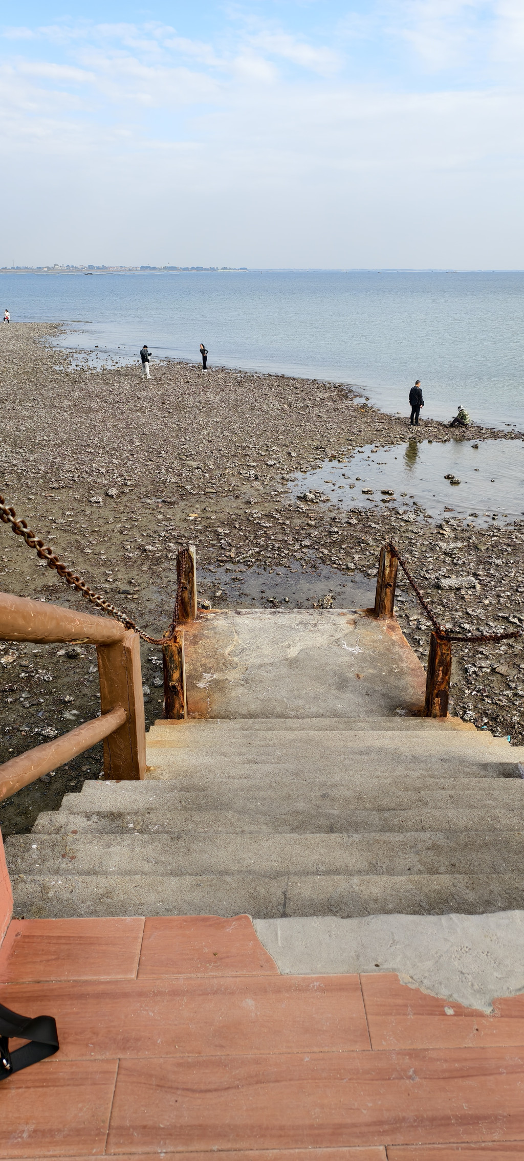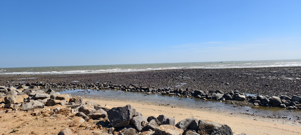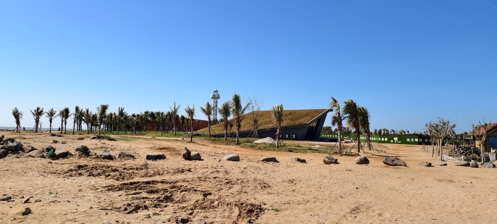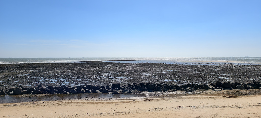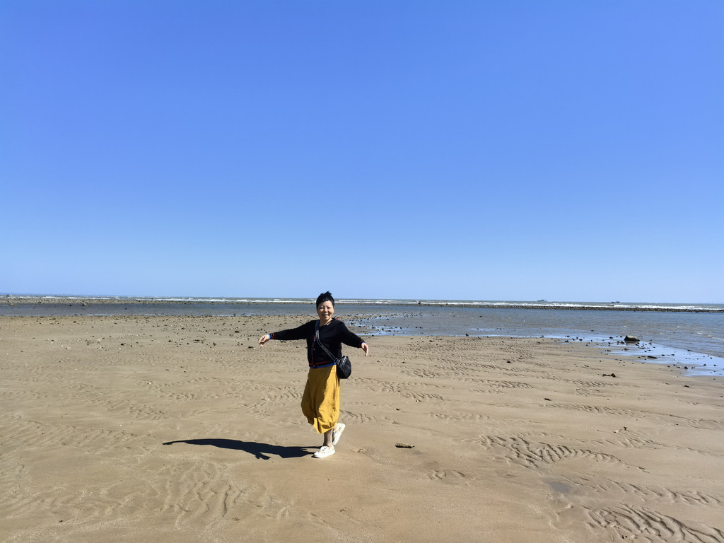 向北走了不一会,就来到渔港公园。出现了一片沙滩,但看着有点磕碜。
