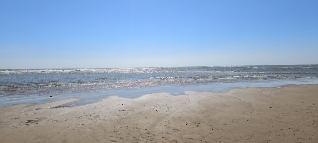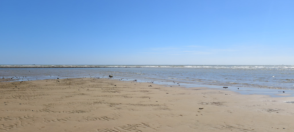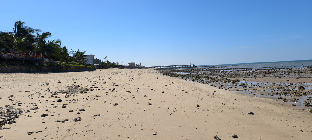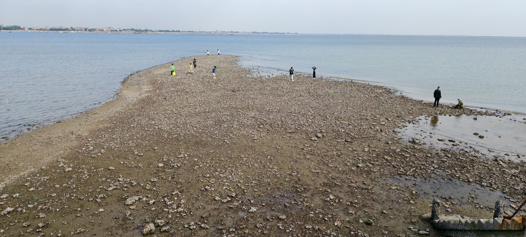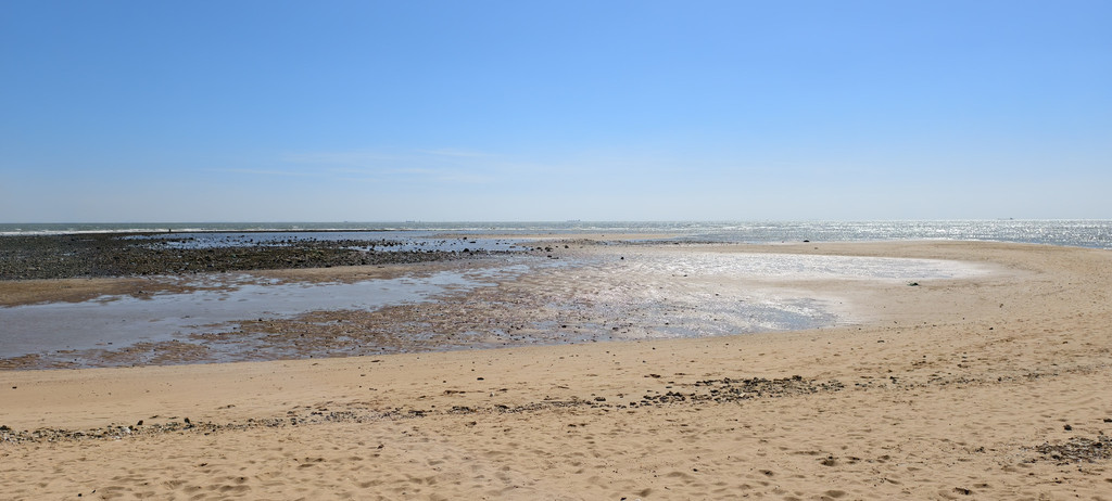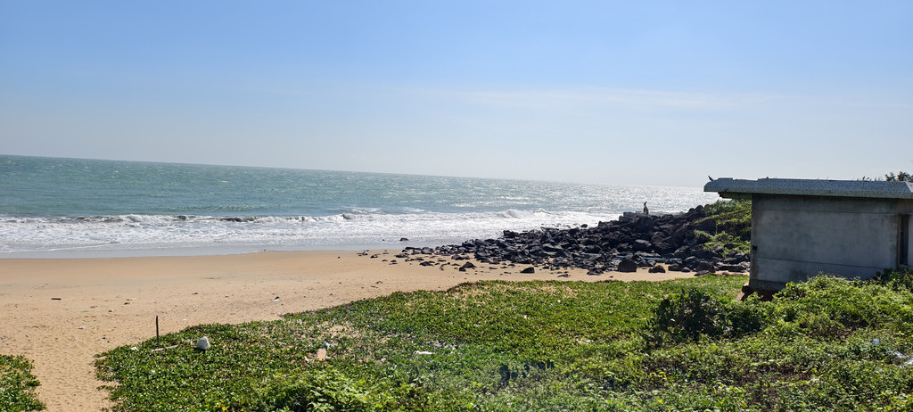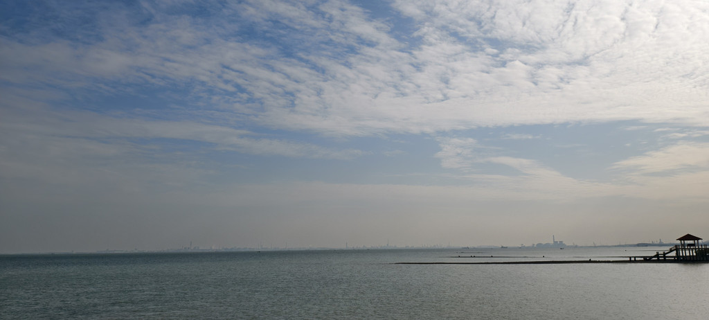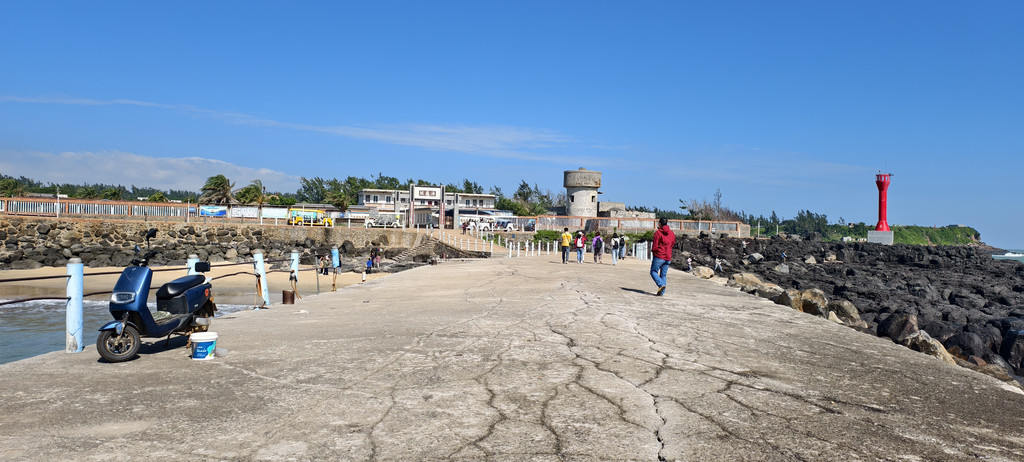 向北走了不一会,就来到渔港公园。出现了一片沙滩,但看着有点磕碜。