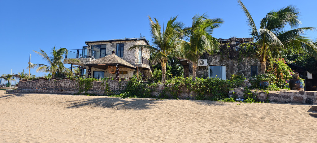 这是岛上一处比较平缓的沙滩,原本应该在这儿可以戏水。但你们看,那片红色的房子,听导游说当时是准备准备做度假区的,后来估计政策不给力,烂尾了,所以沙滩也荒了。