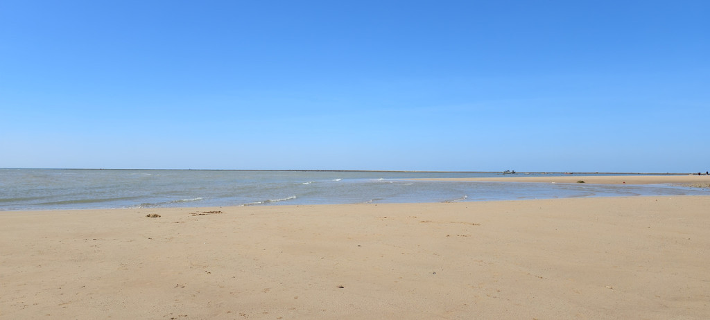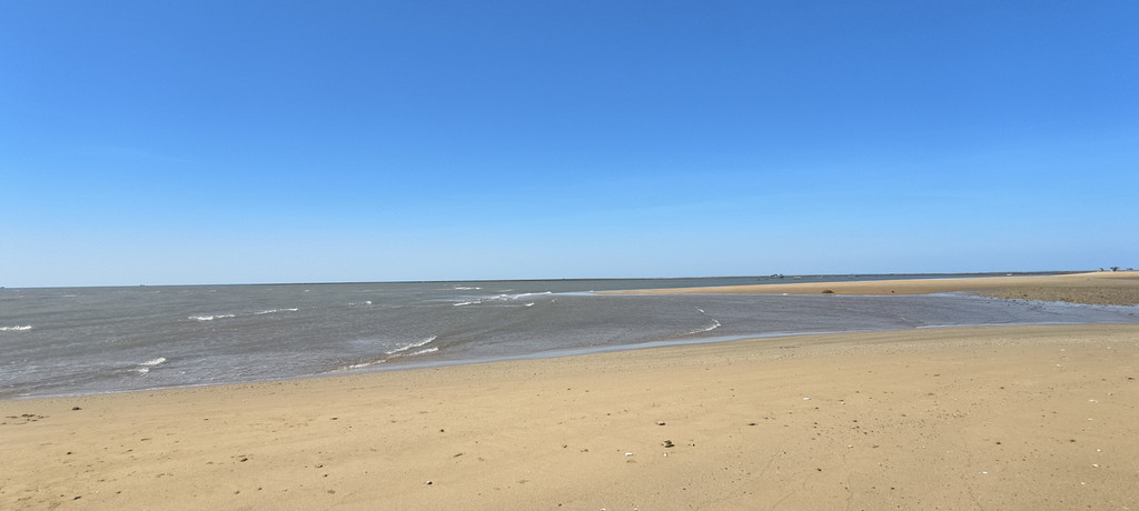 时而可见若隐若现的尖沙洲,属南海的琼州海峡潮流自东向西,北部湾潮流自北向南在此汇合拥抱,如果遇到波涛汹涌的时候,两个海区海水会形成V字浪,也叫“接吻浪”。