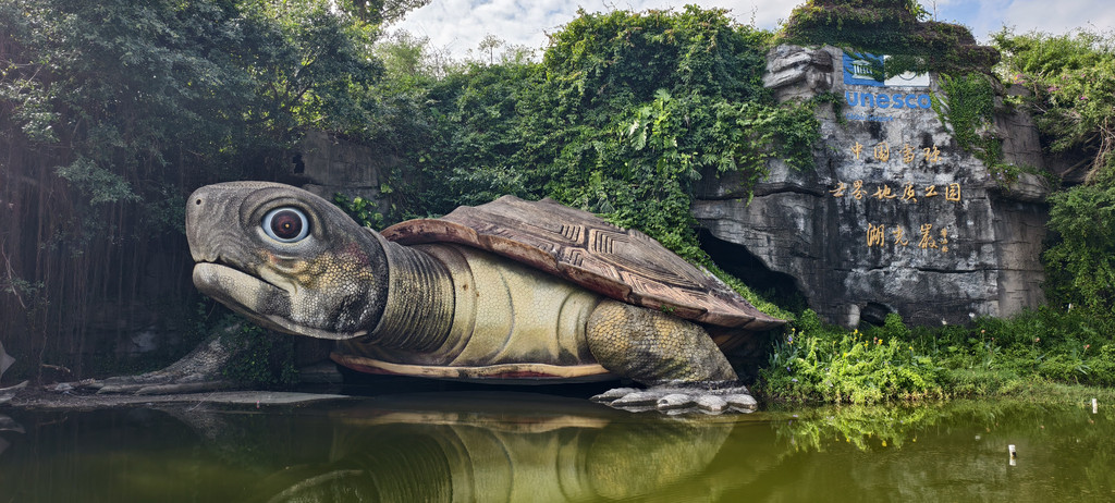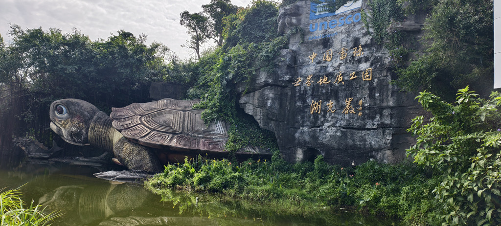 一直走到东门大约1公里左右,景区东门最值得看的就是有只大大的神龟像,这是因为玛珥湖里有神龟和鱼龙的传说。