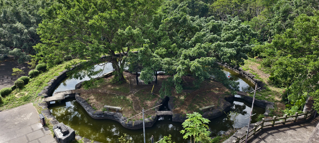 四周廊亭环楼,林木苍翠挺拔,花草茂盛。