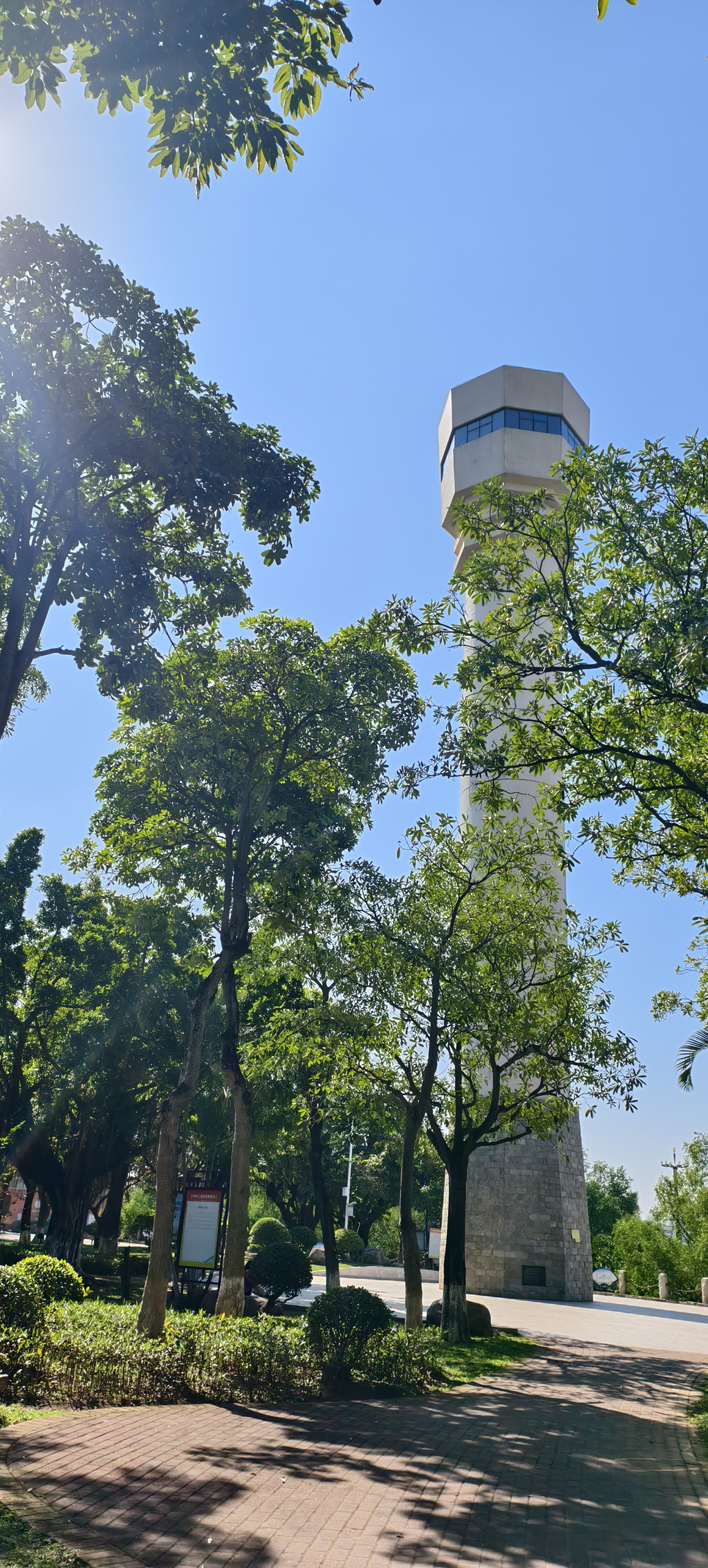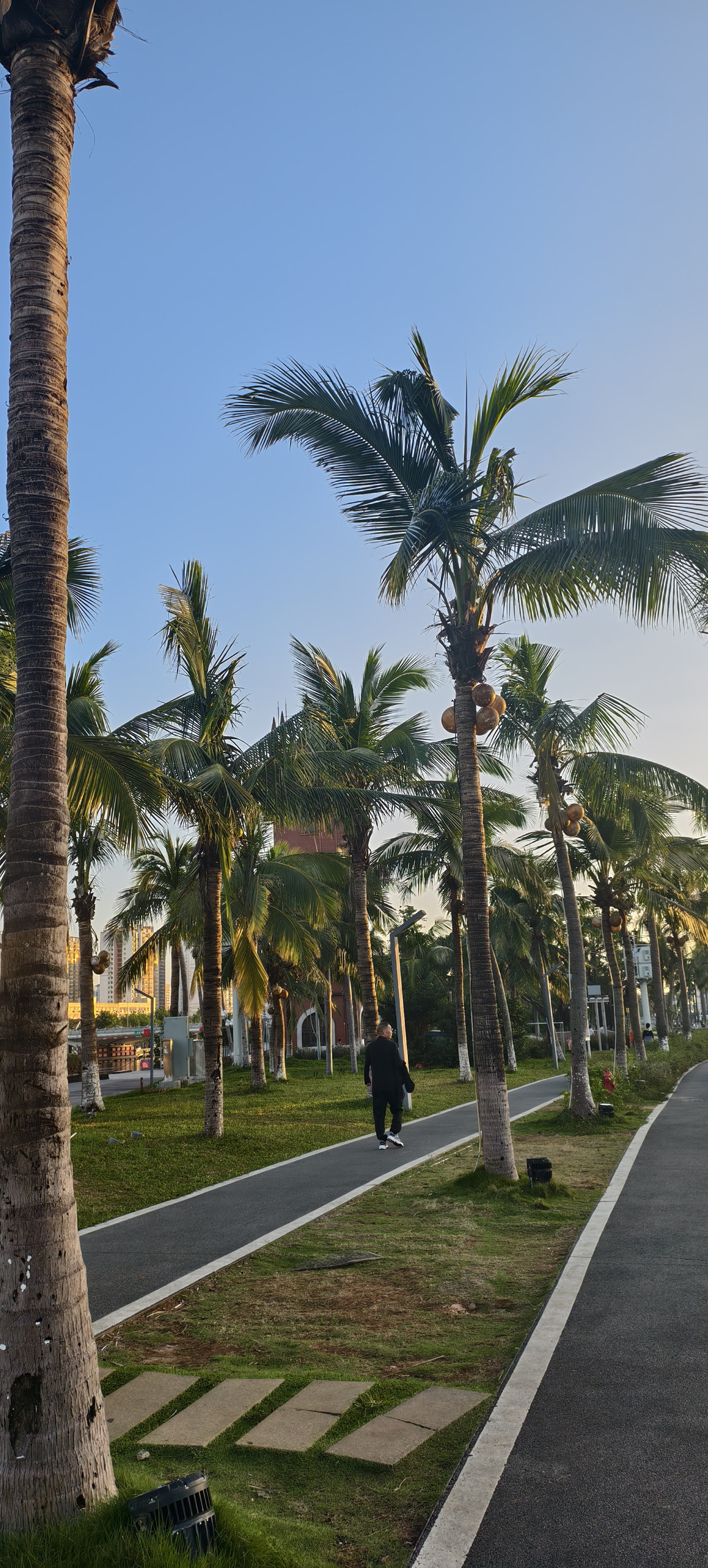 穿过马路,沿着被椰树包围着的小道走向钟楼。