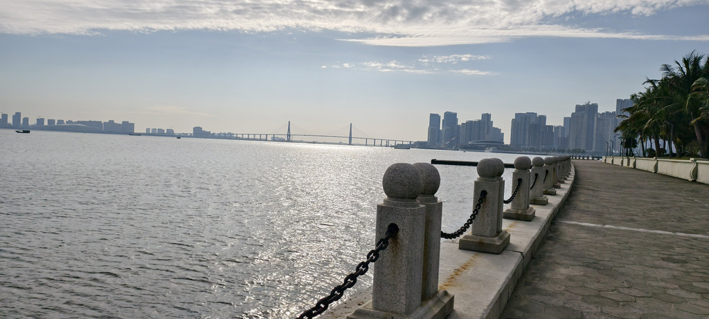 今早6点不到,天蒙蒙亮,独自沿着观海长廊走了一下。早餐是一碗酒店的粉,喜欢!