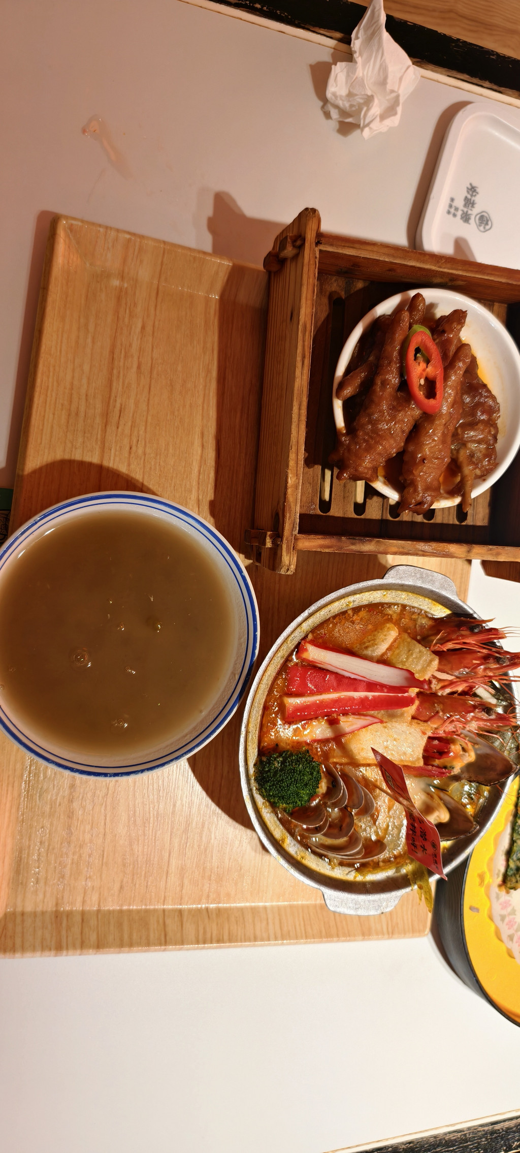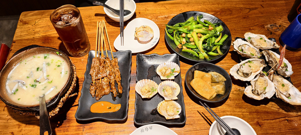 在湛江,“烧蚝帮”是家规模大,口碑不错的品牌连锁店。晚上就在霞山观海长廊附近的“烧蚝帮”用膳了,点的蒜香烤生蚝,非常对的起湛江这块招牌,那生蚝真是肥美啊!同学对这锅海鲜粥也是赞不绝口,特别要提一下“竹蔗茅根水”这款饮料,特别、有回味。