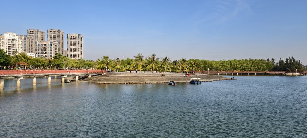 公园风景秀丽、环境幽雅,记载着湛江市人民抗法斗争英雄的寸金桥,从公园月影湖的排水渠上跨过,把公园北苑和圮苑两大景区分开。