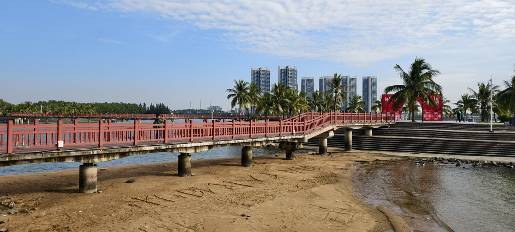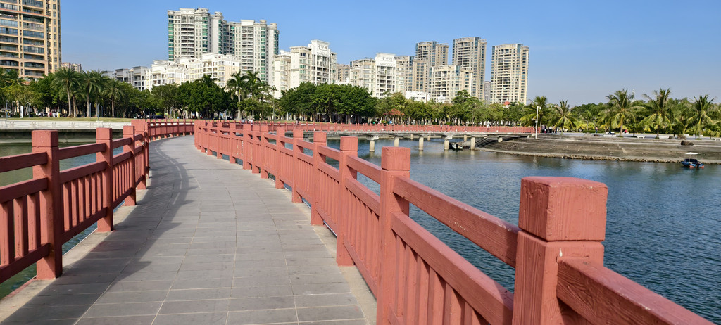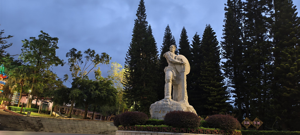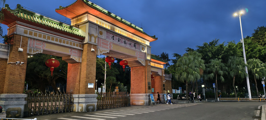 逛完老街,已是暮色。坐落在湛江市赤坎区西侧的寸金桥公园离的很近,就一起参观了。