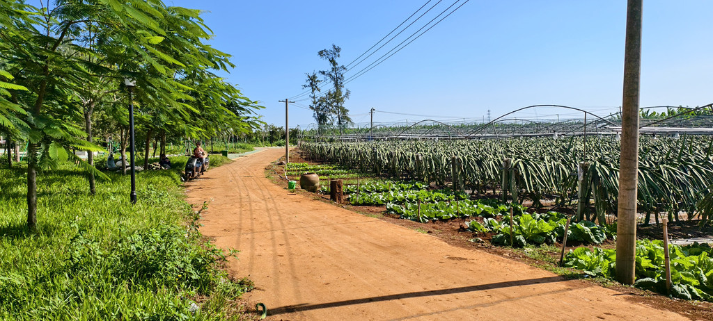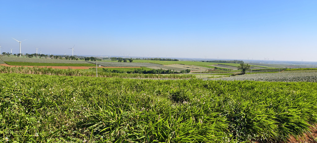 沿途的茶园、良姜园与远处的风车相映成趣,构成了一幅绝美的田园画卷。