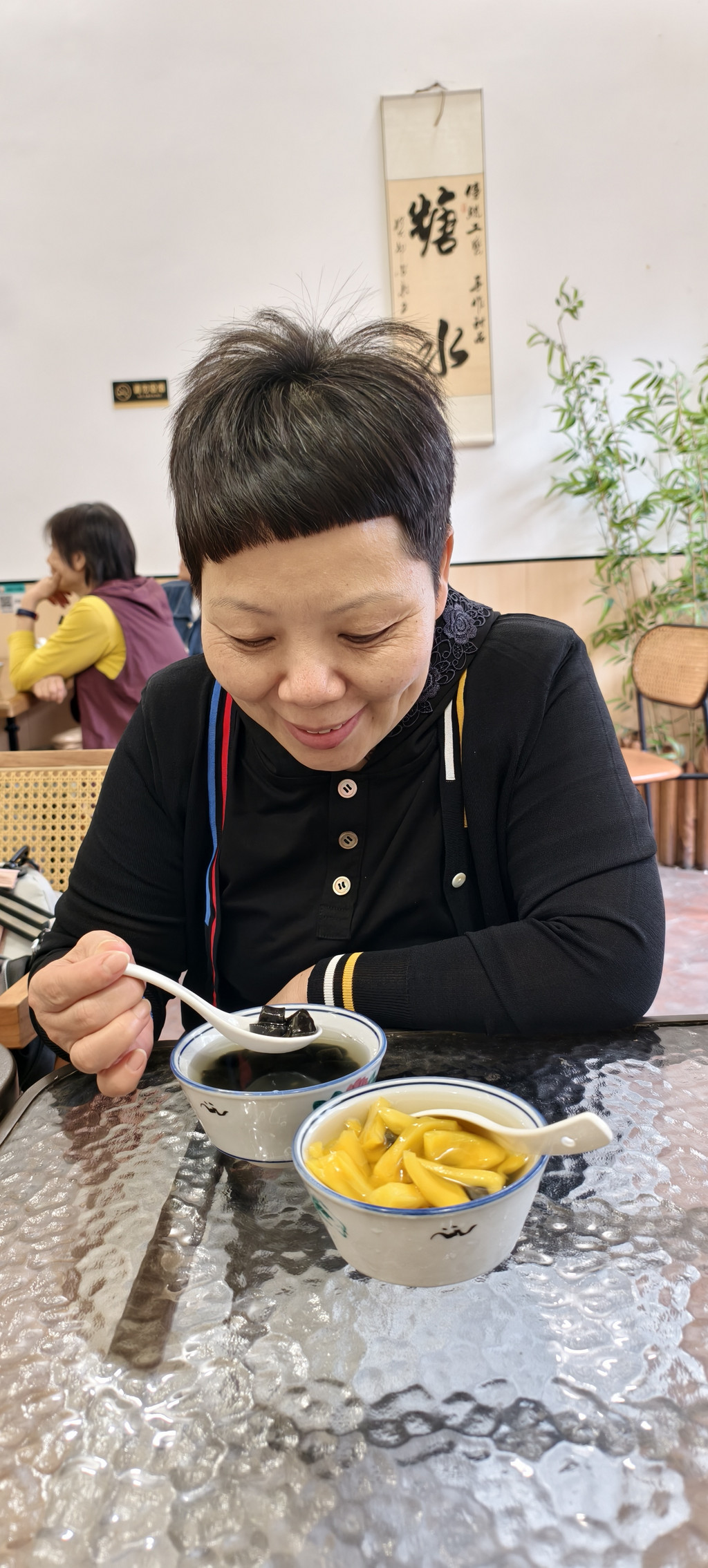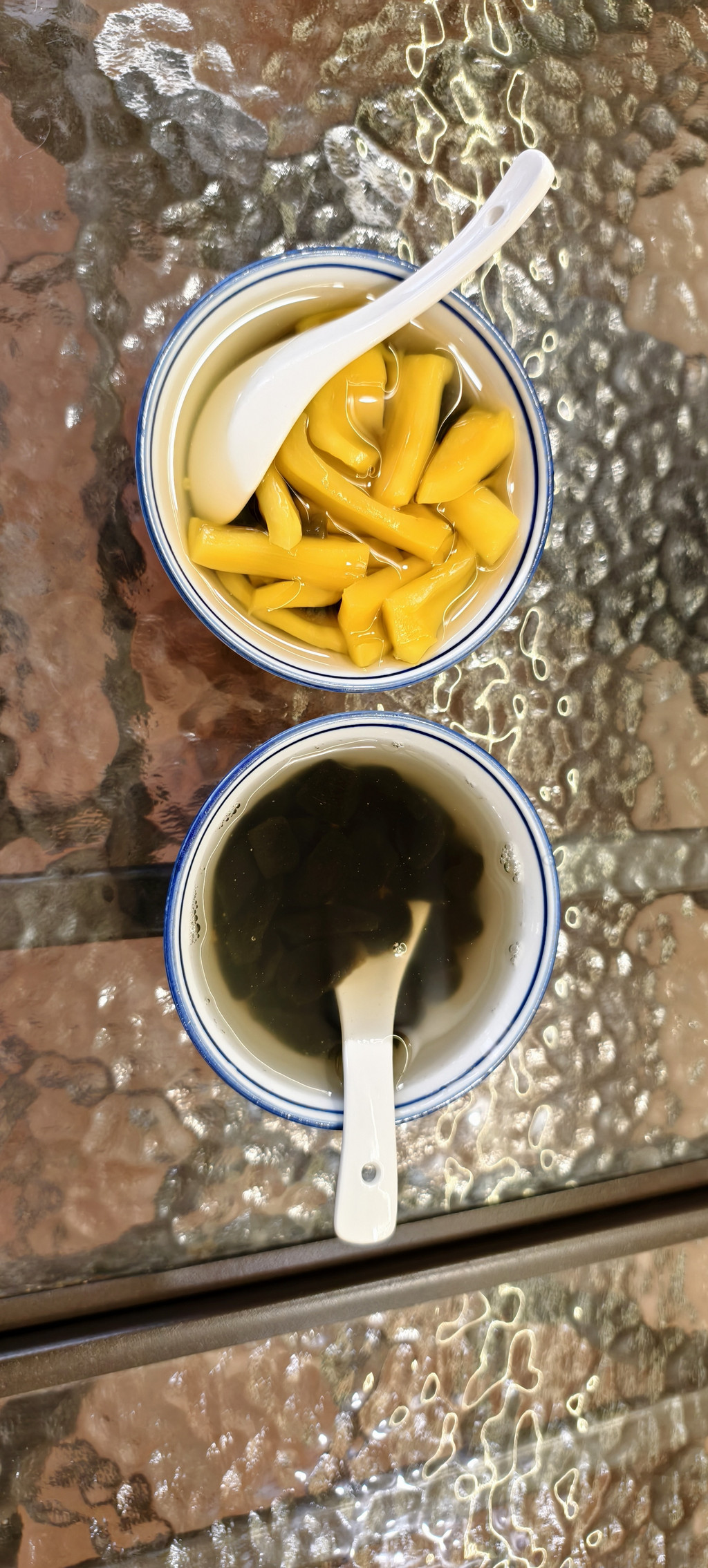 在老街上坐下来,品一碗糖水。黑色的是鸡屎藤,黄色的是菠萝蜜做的。
