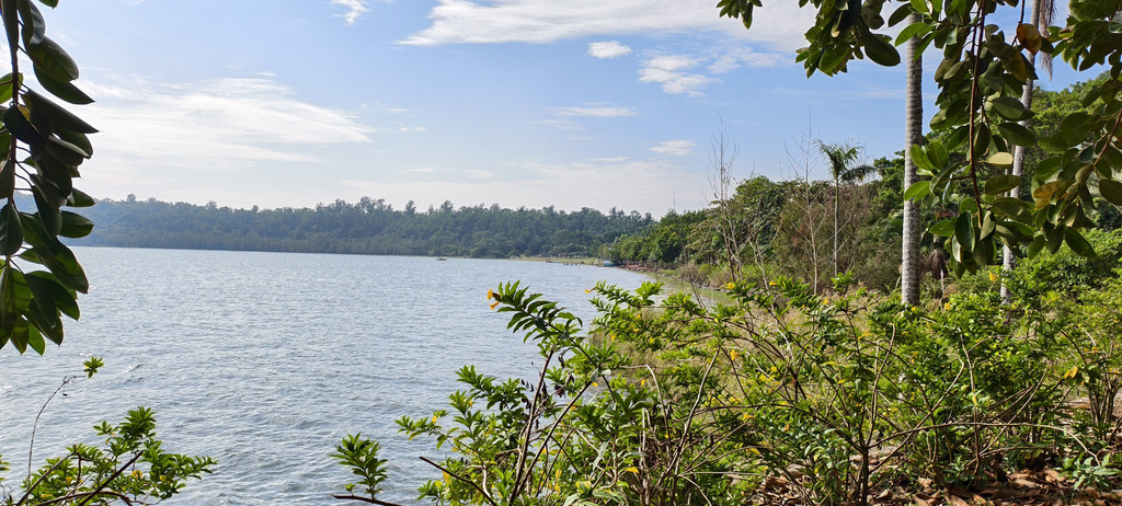 湖光岩是典型玛珥湖,近似圆形。玛珥湖是一种极其稀有的火山湖,是由火山爆发冷却后,陆地上下沉的积水形成所致。湖水因为来自于地下水的渗透,具有天然的自我净化功能,所以无论旱涝都永远不会干涸。