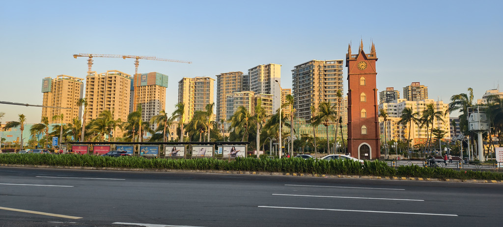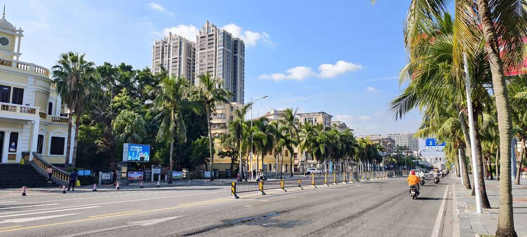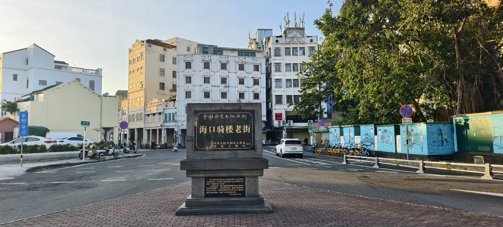 站在清晨的海口公交站旁,先打算去海口钟楼和骑楼老街。