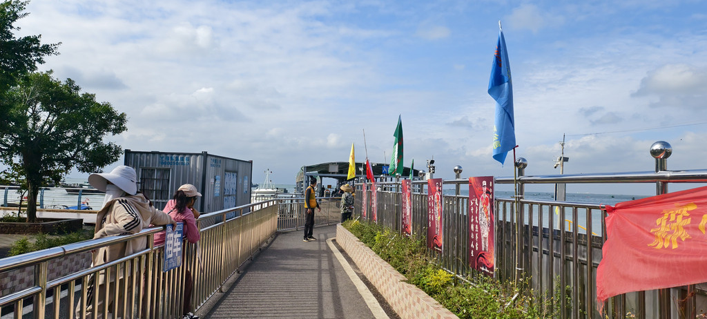 我们从湖光岩回城,恰好终点站就是海滨公园。看看海滨码头到特呈岛的轮渡14:30正好有一班,两位老妇跑着前行,终于赶上了!
