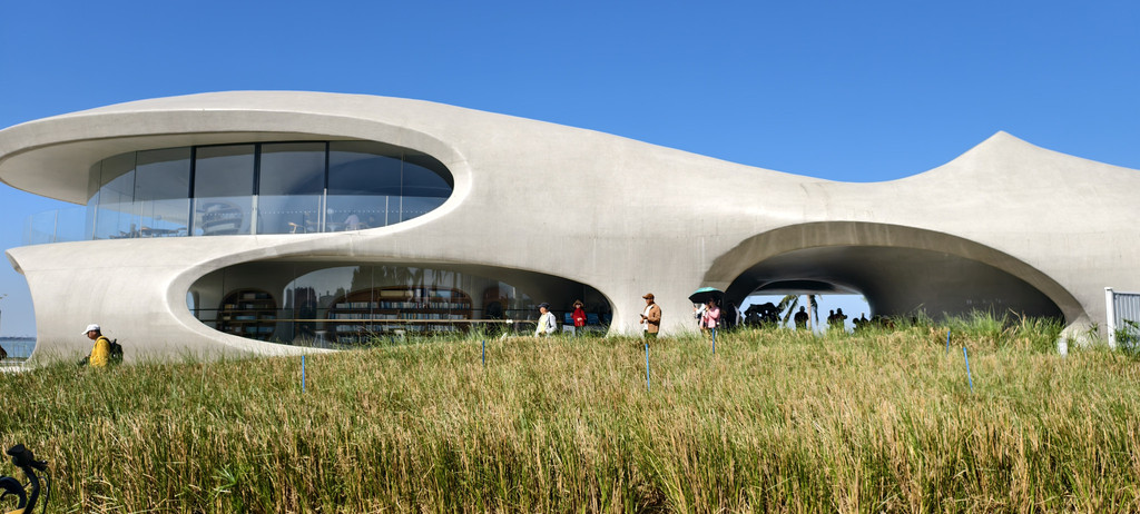 这个面朝大海的阅读天堂,设计极其独特,充满了后现代感,迅速成为年轻人心目中的打卡圣地!