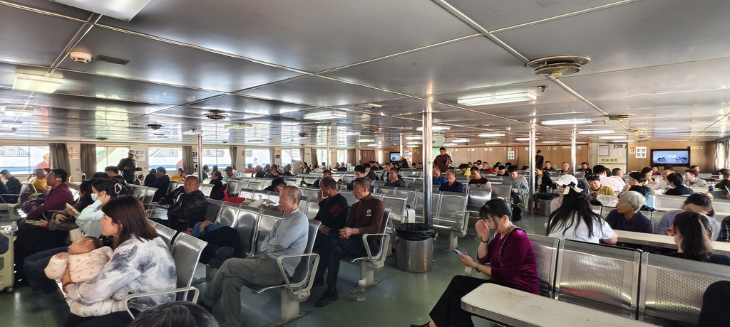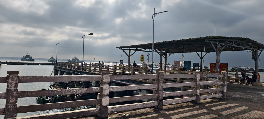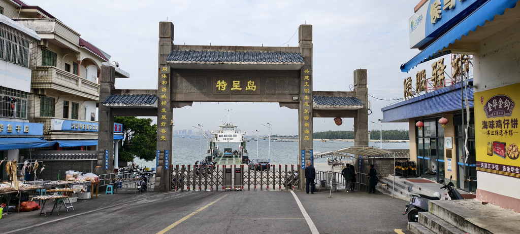 从湛江市区去硇洲岛需在位于车程一个半小时外的湛江东海岛上的东南码头乘渡轮上岛,我们在湛江市霞山区分站坐专线到东南码头。在等车时还遇上了一对住在岛上热心的老年夫妇,登船买票,岛上情况,一直叮咛着。