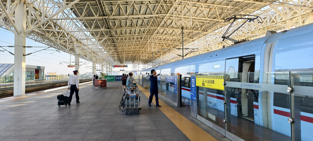 所以感觉和许多城市的高铁站不同,高铁是在城市的高架上行驶,林立的高楼从耳边呼啸而过。