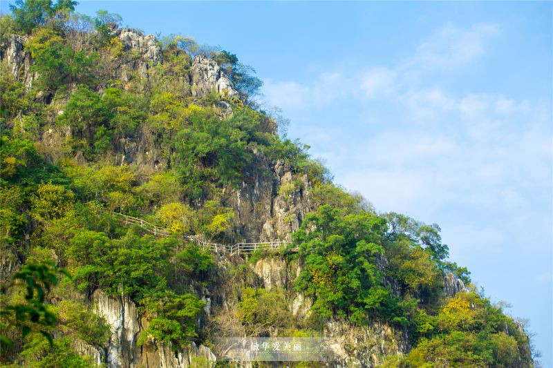羚羊峡古栈道森林公园是沿江而建的西江古栈道,全长9.5公里,两个入口首尾相连,形成了一条十里风光如画的古道长廊。羚羊峡景区为了提醒游客所在位置,每0.5公里处就会在路边设置一个石碑,提醒你走了多少路程。