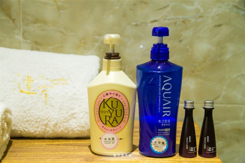 浴室干湿分离,空间感与现代感十足,最让我有惊喜的是,酒店提供的不是一般的洗浴产品,而是用资生堂沐浴露和水之密语洗发露!