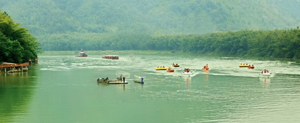 欣赏完竹海风景,就可以乘坐竹排游览绥江,一路欣赏竹林迷宫、神龟锁江、财击福音、卧波栈道、逍遥垂钓、金沙碧水等奇特景观,享受小小竹排江中游,巍巍青山两岸走的快乐。当然上岸后,可以体验竹水车等项目。