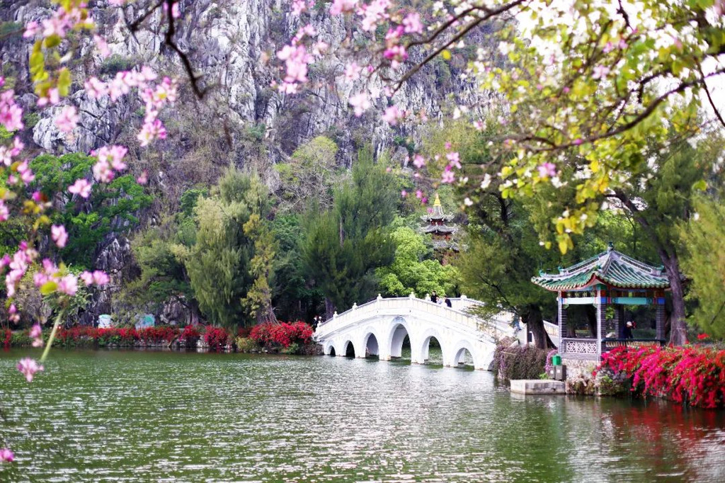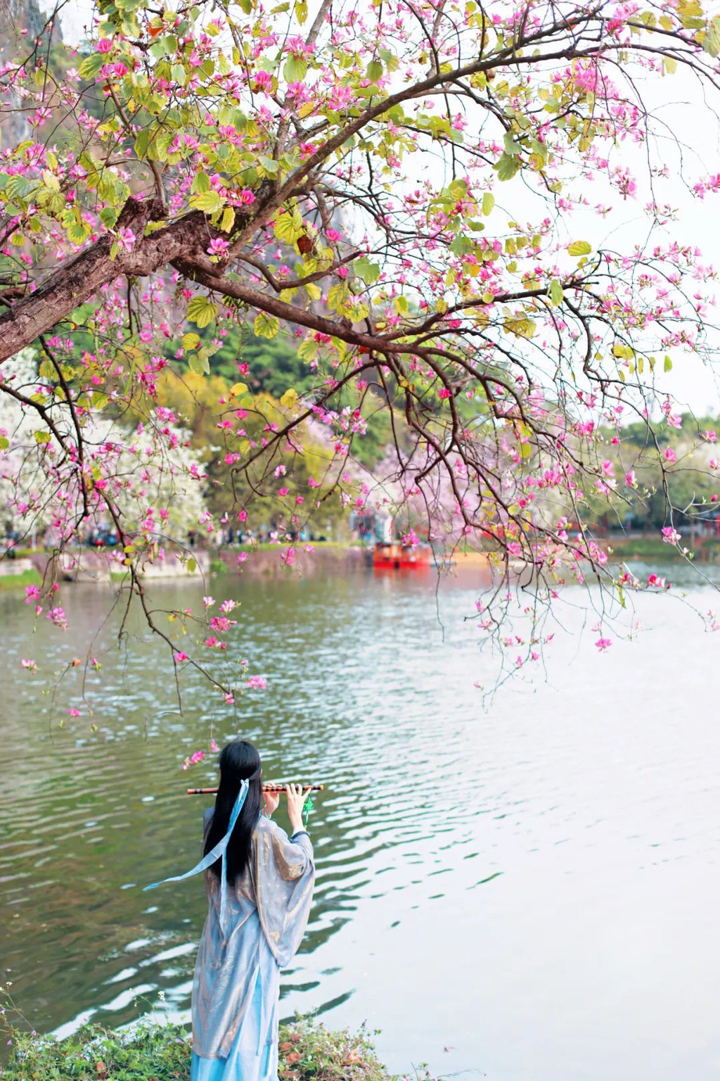 但如果二选一,这个季节我推荐你去七星岩,只因宫粉紫荆正盛开。这一场花事,就像无锡鼋头渚赏樱花一样,是春天的开篇。