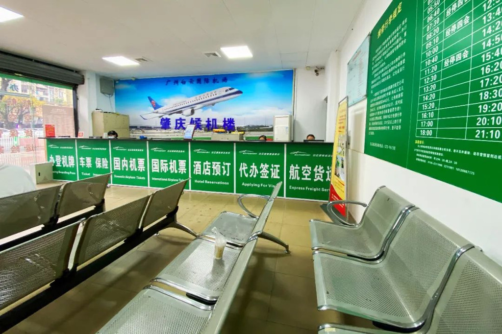 我从上海飞广州,落地广州白云机场。然后买张广州到肇庆的大巴票,79元,1个小时40分钟,就到市区的肇庆白云机场候机楼。