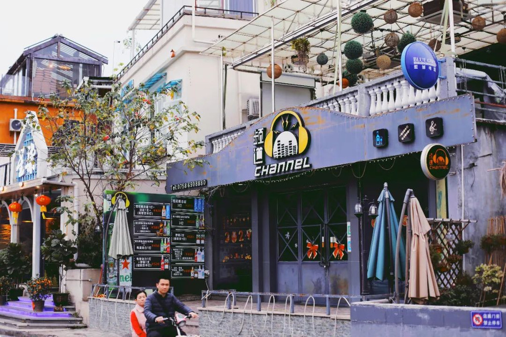 岩前村是由一个旧村改造的,整个村庄与七星岩隔河呼应,大部分餐吧都是面朝七星岩,都有落地窗。这里有很多民宿,客栈,酒吧和饭店,中餐西餐都有。