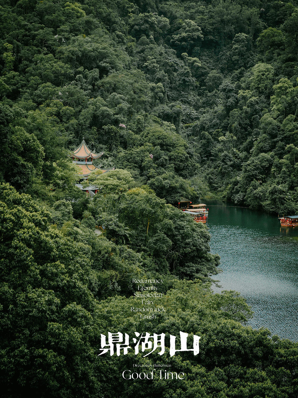 坐着缆车一路往下,便来到了我心心念念的蝴蝶谷,由一湖(鼎湖)一岛(愿望岛)一谷(蝴蝶谷)组成的蝴蝶谷,宛若仙境!鼎湖是鼎湖山最大的湖,若有兴致,还能乘坐摇橹船荡漾在美如画卷的湖上,舟行碧波上,如在画中游,蝴蝶谷的美,你来了才会感受得到。