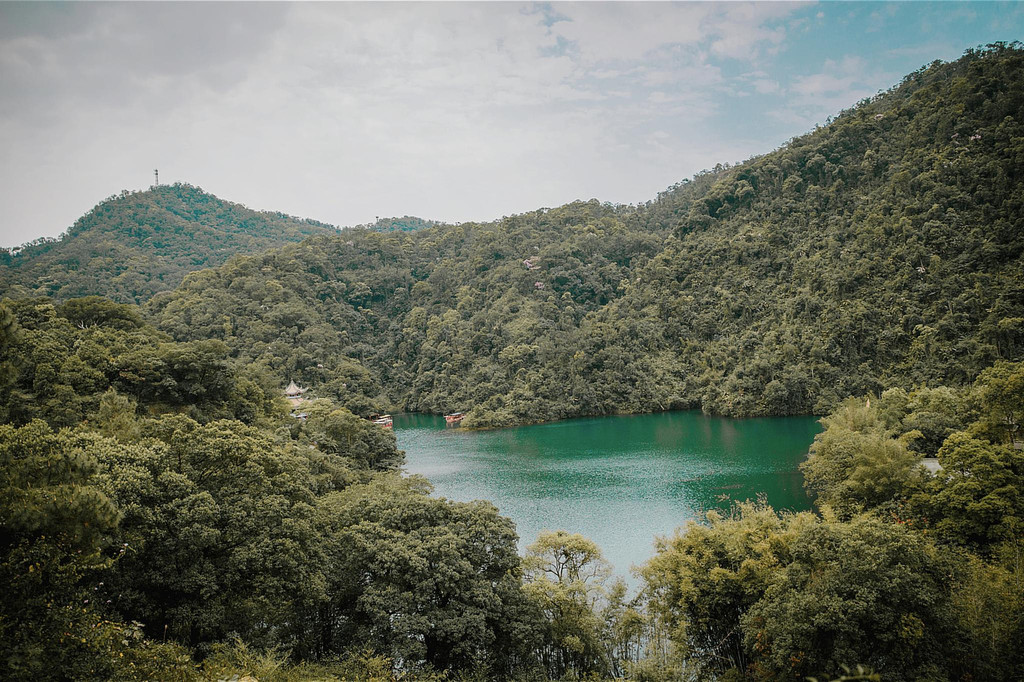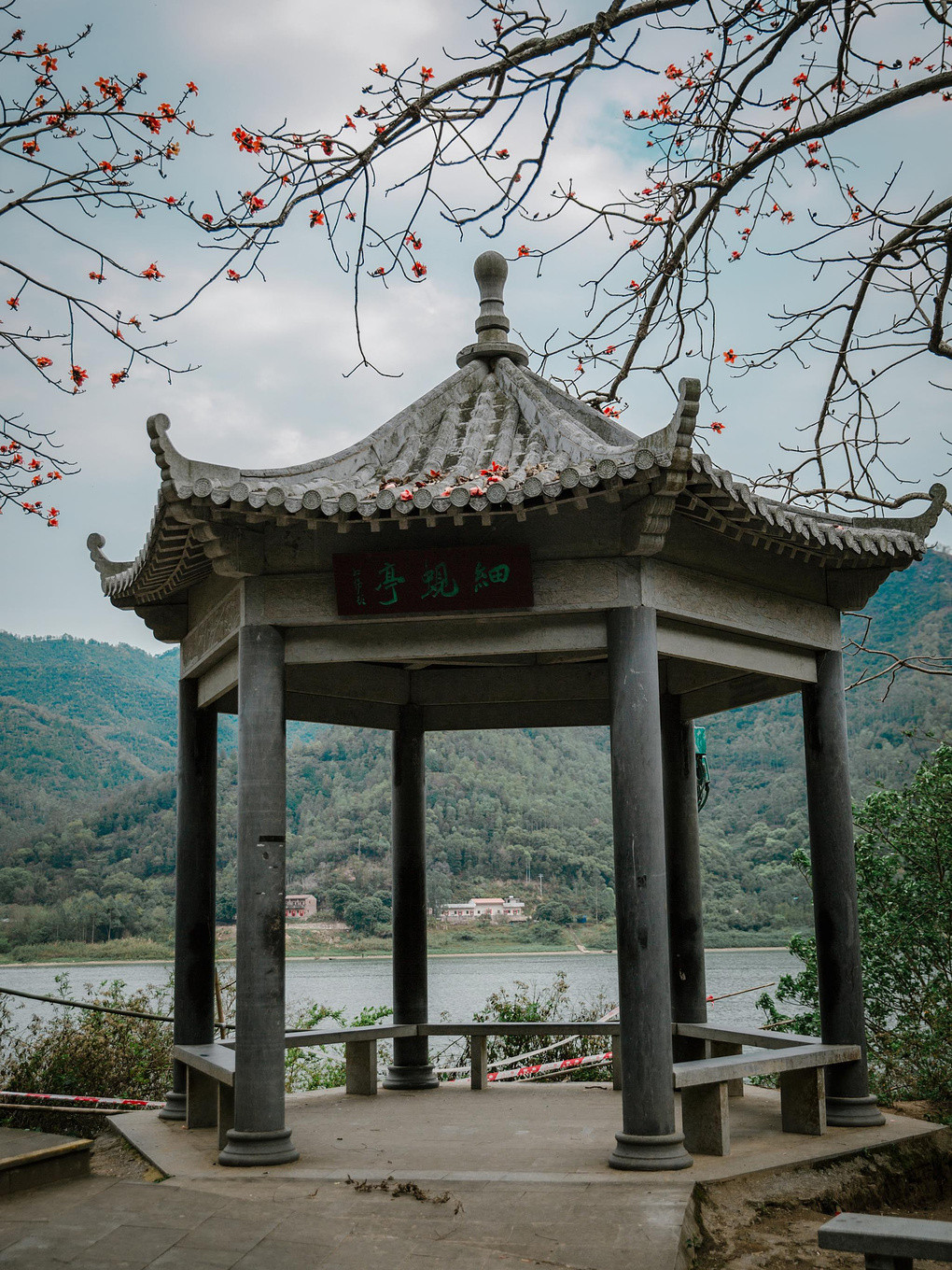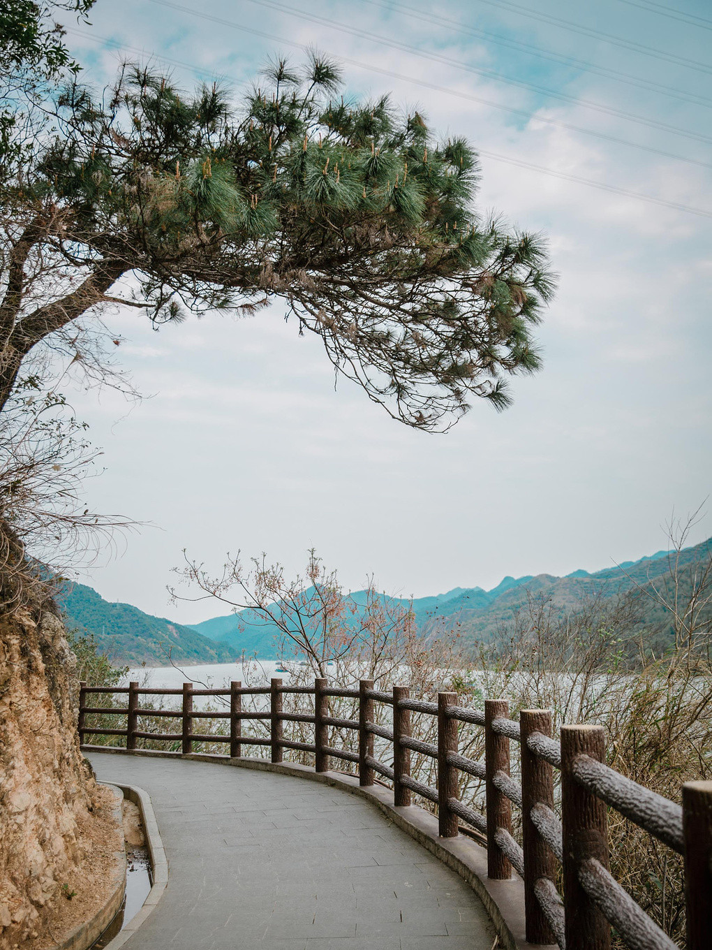 在观景台上往下望去,湖面的蓝,鼎湖山的绿,融为一体,恰似蓝,又恰似绿,或深或浅,让人格外赏心悦目。绿阴环抱的鼎湖碧水如玉,蓝的仿佛绸缎一般,偶尔微风拂过,吹皱了这一池春水,也吹动了游人的心扉,呼吸了无数遍鼎湖山高负离子的空气的我久久不愿离开,想来夏天若是过来,一定是个特别舒爽的避暑胜地。