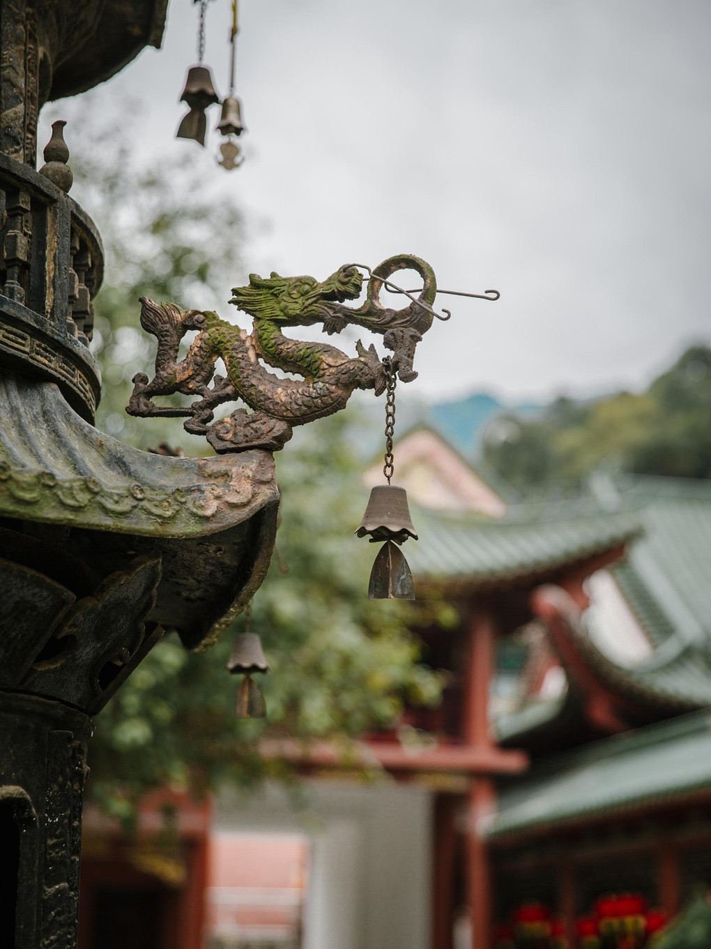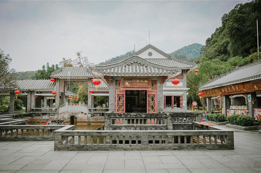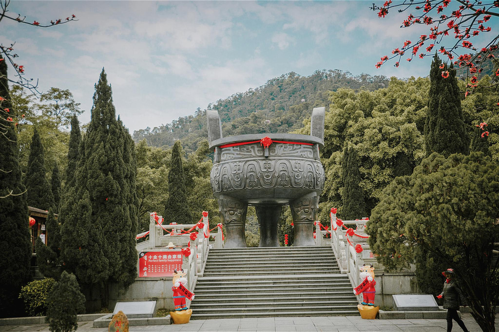 入山先乘坐缆车一路飞奔而上,便来到了鼎湖山中一言九鼎的地方。往里走便是坐落在郁郁葱葱林中的“肇庆九龙宝鼎”,看起来格外雅致壮观,充分展示了中国青铜文化与岭南园林艺术的巧妙结合。因为大鼎颇具灵性,也会有很多游客会把心愿写在彩球上扔其中以问鼎祈福。