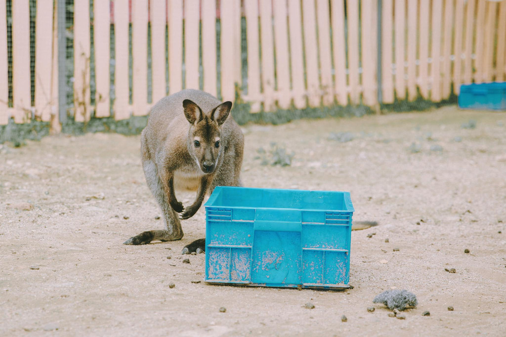 让人最惊艳的是这里袋鼠,一蹦一跳的萌萌身姿很快引起了所有人的注意,活泼的很,要么从饲养员手里抢食,要么对着镜头卖萌撒娇,要么对着竹篱笆开始思考人生,呆呆傻傻,萌趣十足;