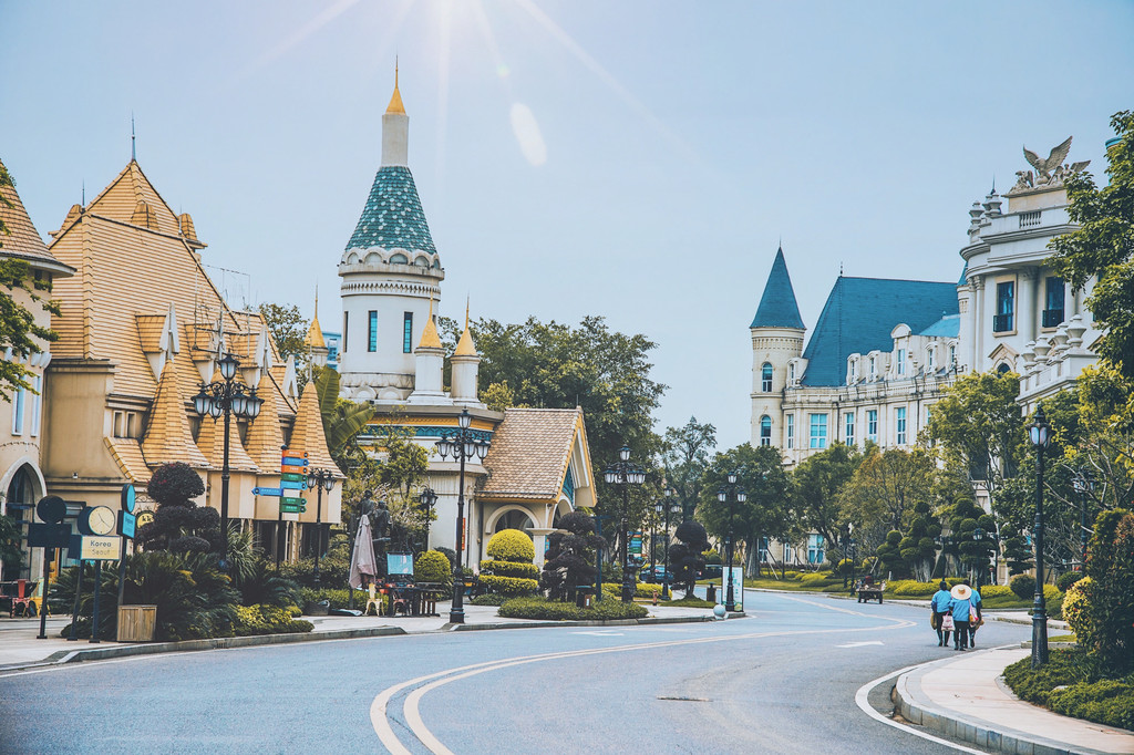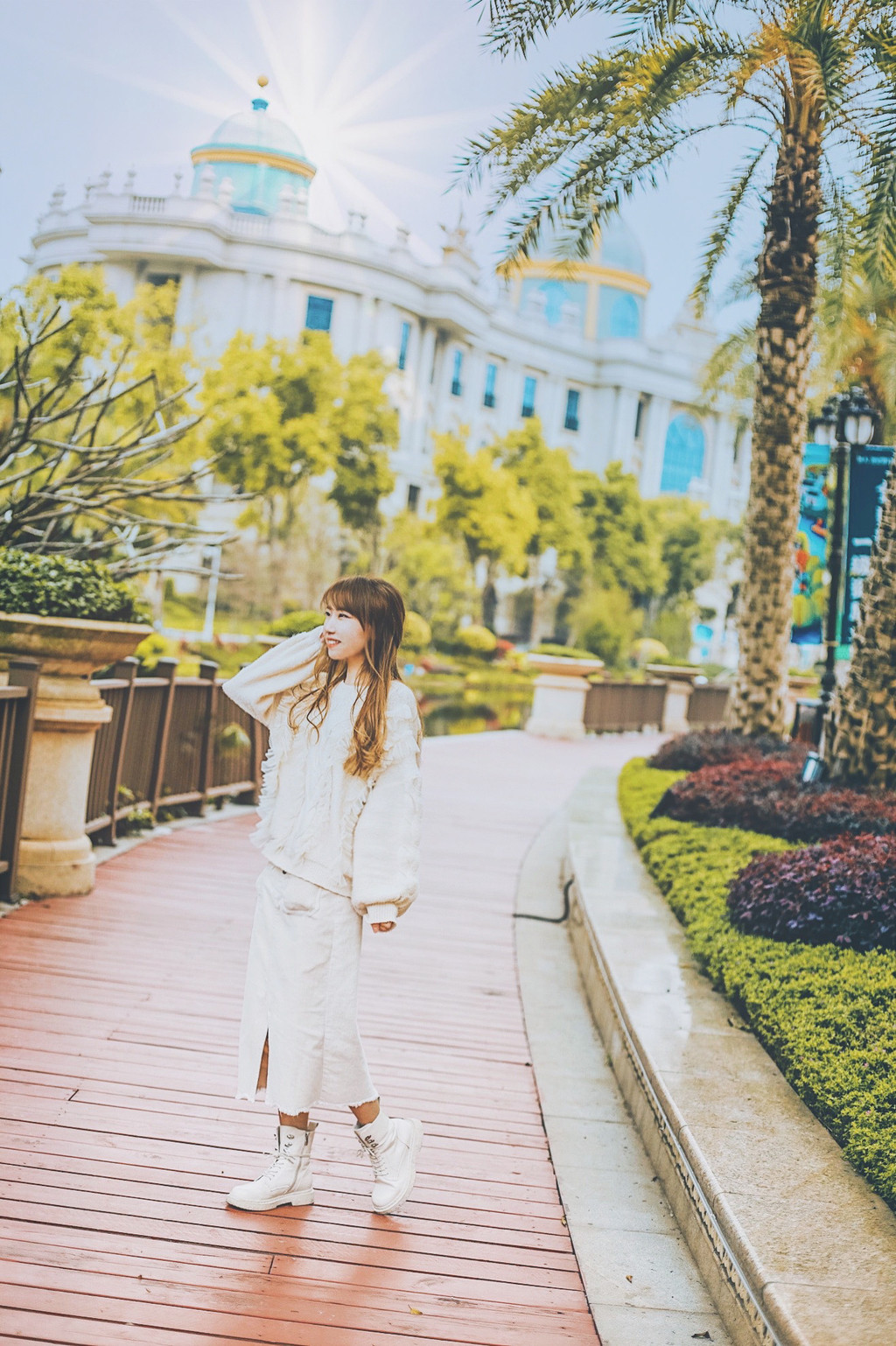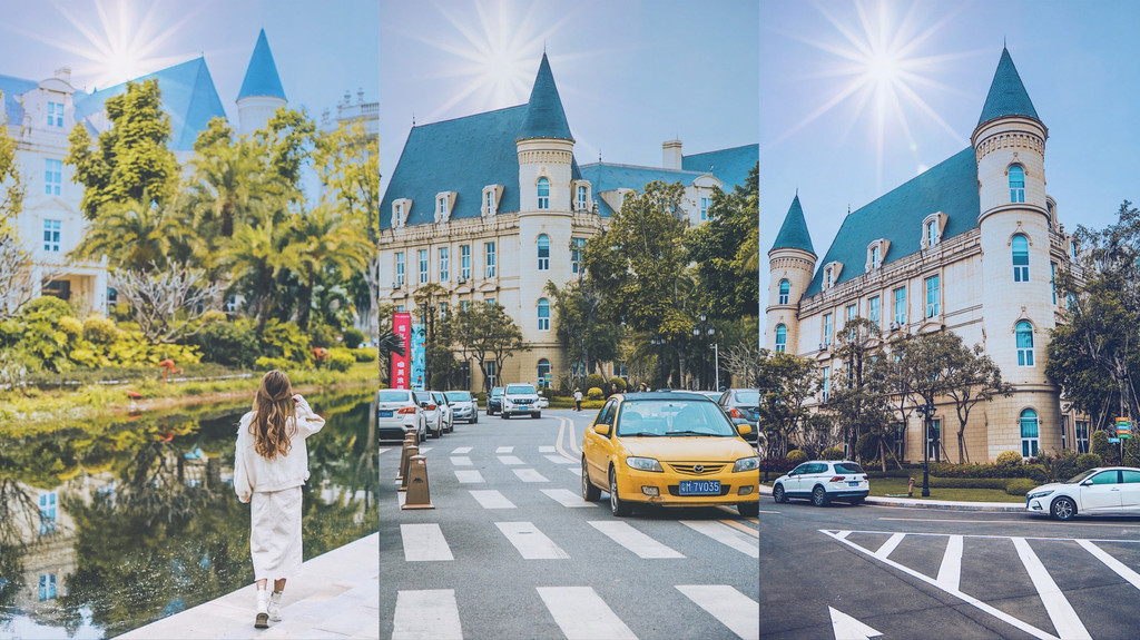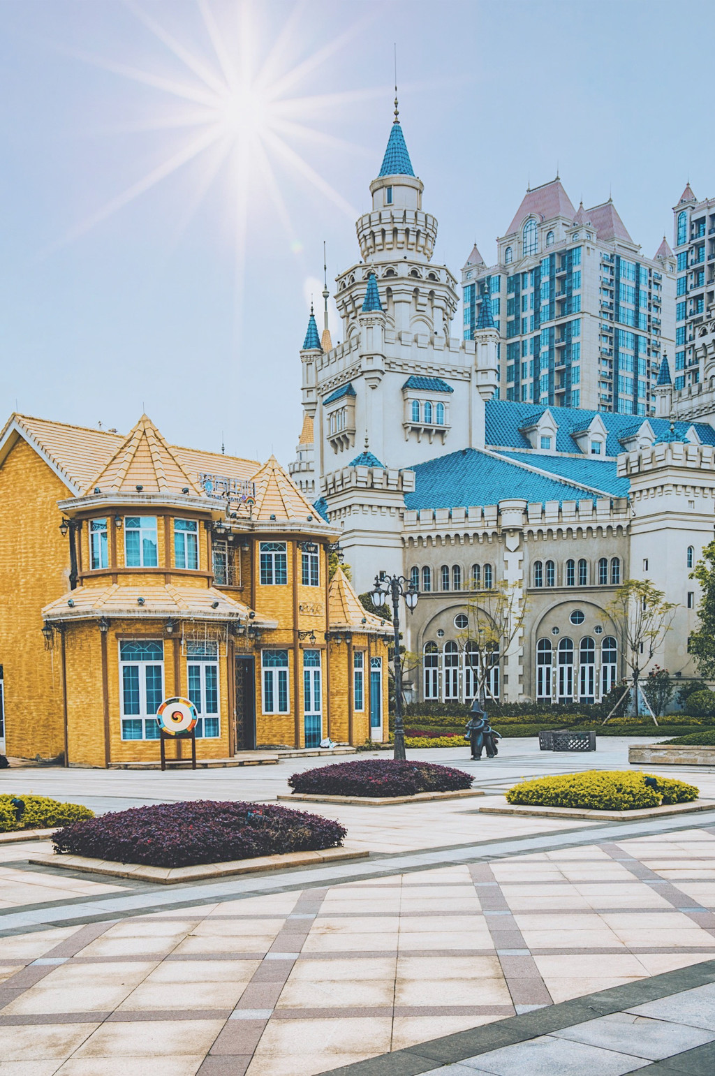 应该穿小洋装或者公主裙,这样才配这个梦幻的城堡群。