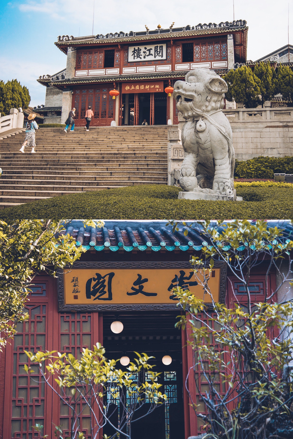 ? 阅江楼的建筑布局格外讲究,呈四合院分布,东西南北4座楼,楼与楼间建有回廊小阁,互相衔接,中间是典型的岭南庭院。