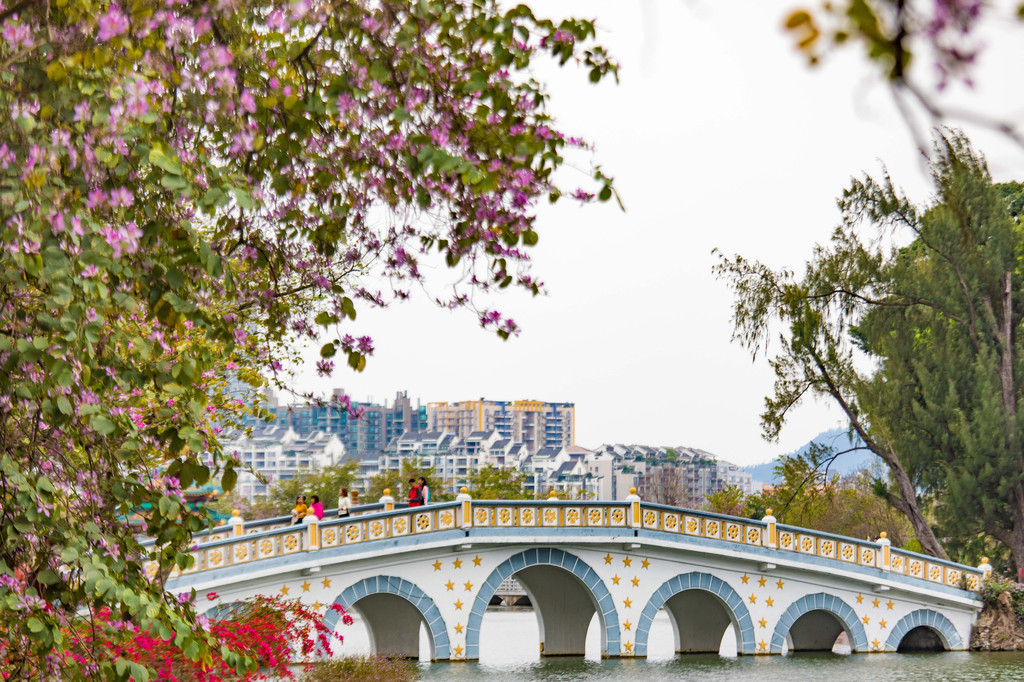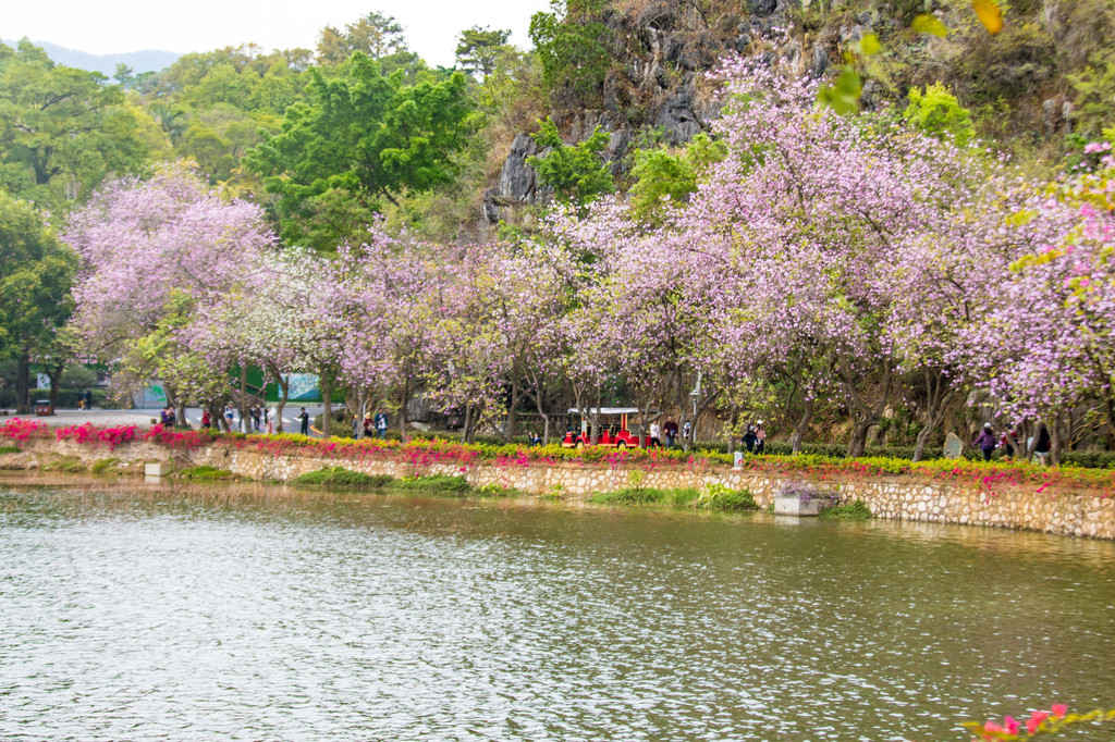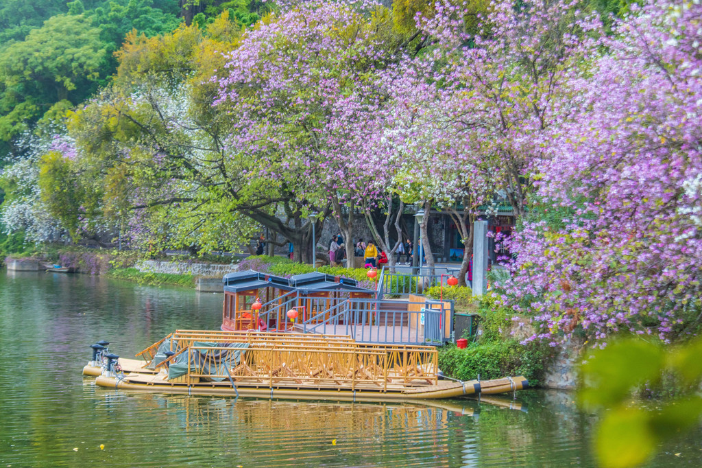 七星岩就位于肇庆的市中心,位置非常优越,交通很方便,不仅游客喜欢来这里游玩,当地的居民也办理了年卡,时不时地也会到七星岩散散步,尤其是三四月份的时间,这里的紫荆花都开放了,有一条广东最美的紫荆花步道,也吸引了很多游人前来欣赏。