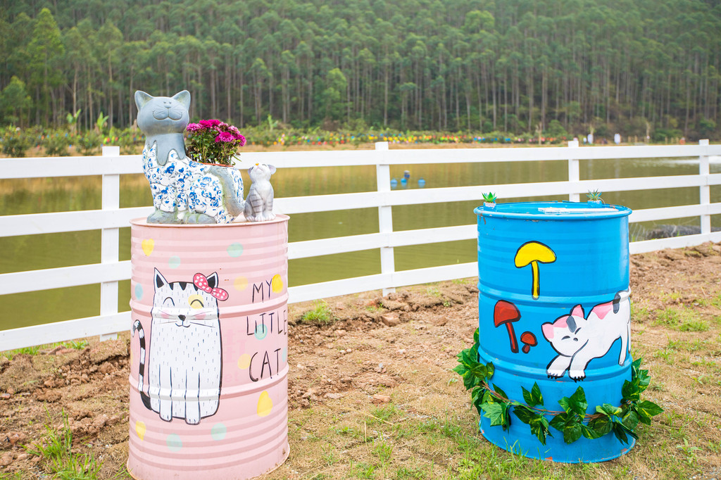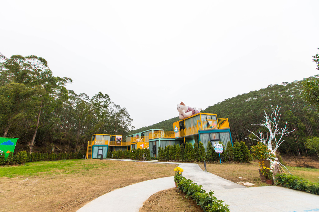 咖啡馆旁边是一处集装箱的住宿地,有的集装箱身上还放着一个大大的猫咪,十分的可爱。夜晚选择来这里住一天,或许是不错的选择。清晨醒来,空气十分的清新,入眼是各种猫咪的元素,整个心情仿佛都雀跃了起来。