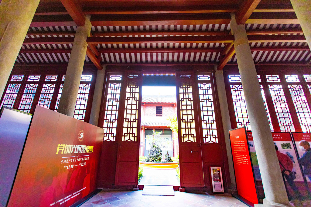 登上台阶,二楼的匾额上写着阅江楼三个大字,它是清两广总督劳崇光所书,而在一楼的匾额上也有一块牌匾,上面写着独立团团部旧址几个大字。