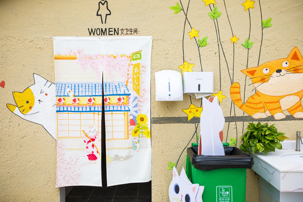 就在农场旁边还有一个猫咪博物馆,毋庸置疑,这里面就是关于一些猫咪的小知识。就在博物馆对面还有一个厕所,整个厕所都打扮成了猫咪的元素,这也太可爱了吧,简直少女心爆棚。