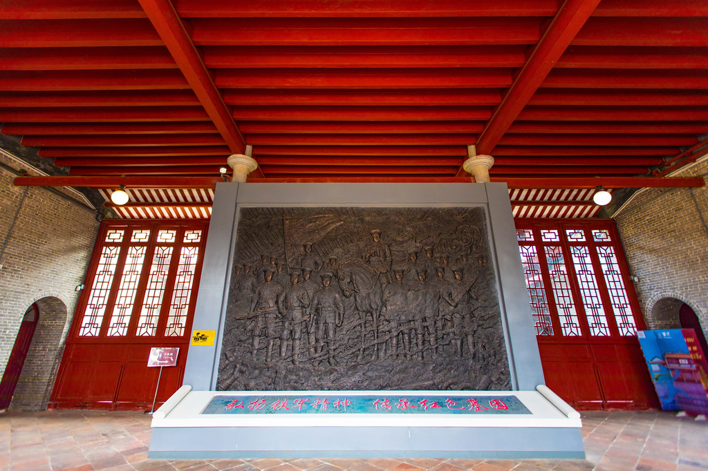 绕过石雕后面是一处庭院,便来到了二进制庭院的最后一间崇文堂,里面摆放的是当年的红军精神和红军故事。在大堂正中央有5块石碑 ,这是康熙的御书碑,曾经有6块,但是只有5块保存了下来。
