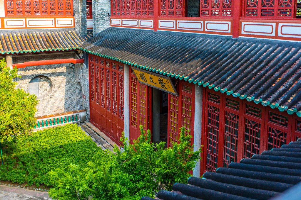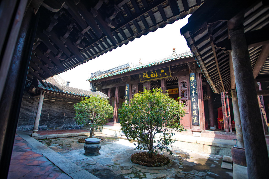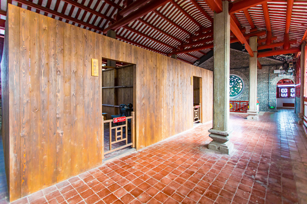 在八卦村旁边还有一座敦善书舍,它也有着百年的历史,在古代这里有着高要最高学府的称号。我们来的这一天刚好书社关闭,只能从两侧的窗户看一看里面,里面供奉的是孔圣人,听说如果可以进去拜一拜,便可以保佑学子学业猛进。