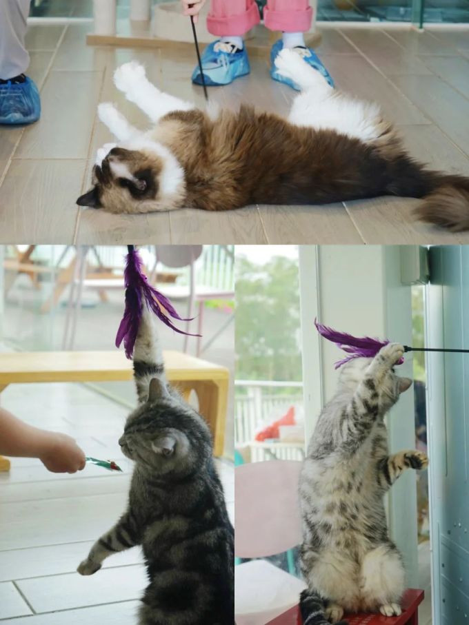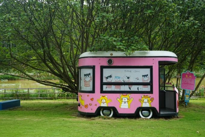 景区里的猫咖馆“猫の窝”简直是让人感受到坐拥“后宫三千喵”的幸福感!泰猫、布偶猫、加菲猫、蓝猫、暹罗……可摸可撸可抱抱,瞬间被乖巧的猫咪萌化了。花花的一点点温馨提示,家长记得看管好自己的小朋友,不要对猫咪做出粗鲁的行为哦。涂喵墙也是猫爪谷高人气打卡点,“呐喊喵”、“蒙娜丽喵”、“戴珍珠耳环的奶茶喵”……景区里随处可见的猫咪造型,每一个都有自己独特的造型。除了可以吸猫,在猫爪谷还有着近50多个打卡点,水上乐园、露营野餐、菜园果园花园,那么多项目,都够玩上一整天了。园区面积还是挺大的,大家游玩的时候可以选择景区里的往返小火车,或者可以租个多人单车,在彩虹道上向喵星人出发吧!四会·奇石河