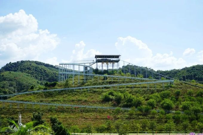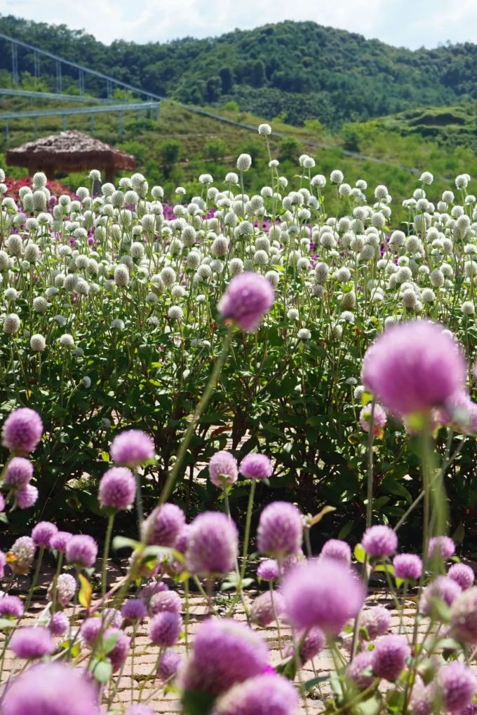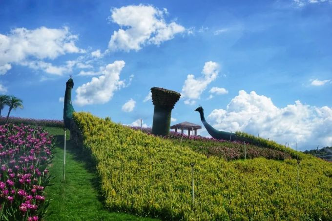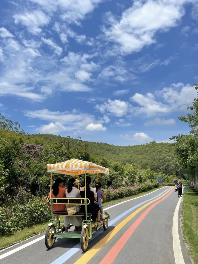 玫瑰花园、向日葵园、薰衣草花海等等,在蓝天白云下,随手拍照都是夏日里缤纷的色彩。特别是天空之境系列,园区一共有3处场景,背后是青山、前方是花海,自带梦幻滤镜!景区的游览路线全长约5公里,建议大家在园区里搭乘观光车游玩。当然,天气凉爽的时候,还是很适合步行走走,慢慢欣赏沿途景色的。高要·猫爪谷