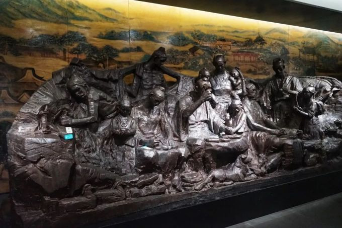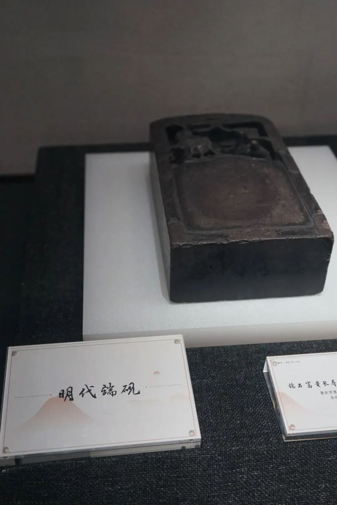 花花一入门就有被震惊到,宽9米、高3.2米的整块浮雕墙,气势宏伟,细节线条勾勒细腻,立体生动地展现了端砚石的产地发源。博物馆的空间设计同样富有韵味,“宋代山水理念美学”和现代简约风格结合,大气又雅致。主展厅通过稽古探源、紫玉生辉、砚出端溪等八个部分主题,从方方面面展示着端砚发展的简史。花花推荐大家可以预约讲解员带领参观,在专业讲解下,可以对端砚有更深入的了解。